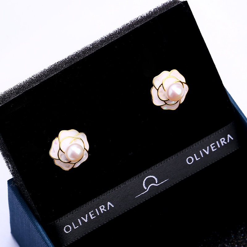 【每证一品】奥利维拉山茶花珍珠耳钉C1-3625-1
