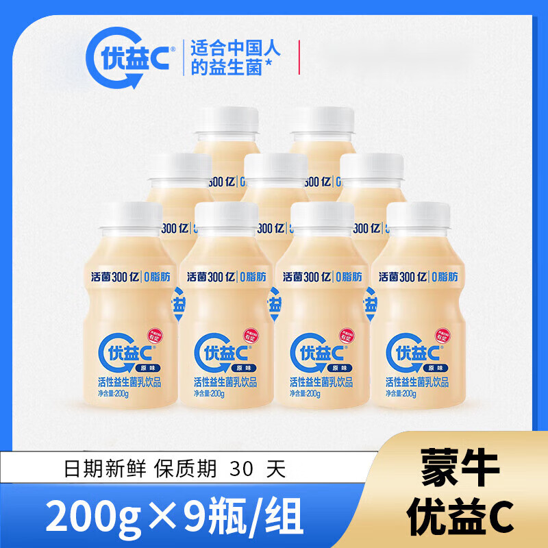 蒙牛优益C 益生菌乳饮200ml*9瓶 经典原味好喝不腻 零脂肪【新疆、西藏不发货】