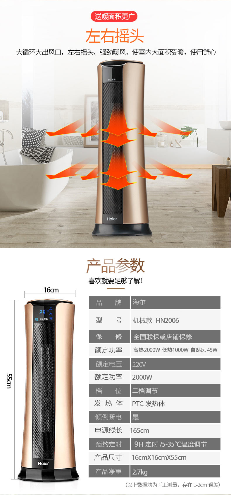 海尔/Haier 电暖器 HN2006 立式电暖风浴室热风机电暖气节能省电速热取暖器办公室烤火炉 暖扇