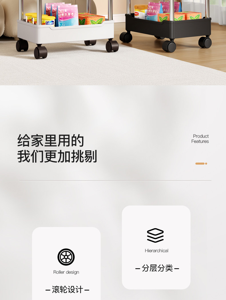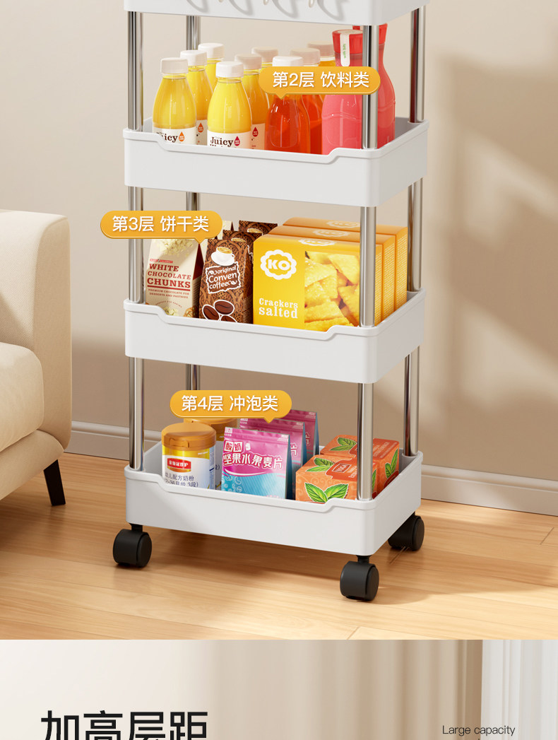 【4层加宽款】推车置物架落地多层浴室卫生间夹缝客厅厨房分层置物架收纳小推车