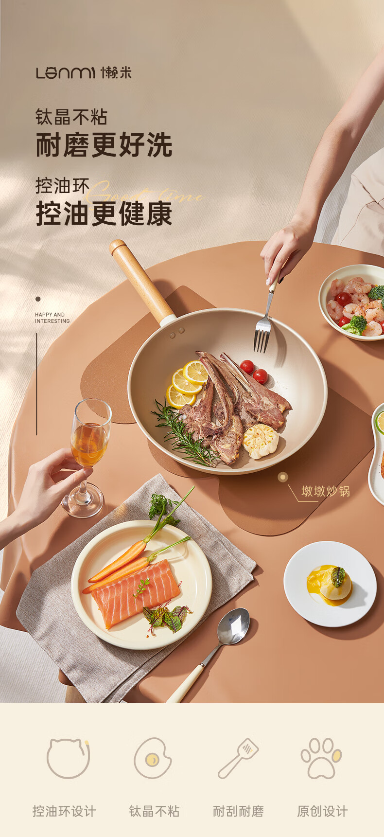 懒米 墩墩控油炒锅30cm-陶瓷版LM-CL30D2