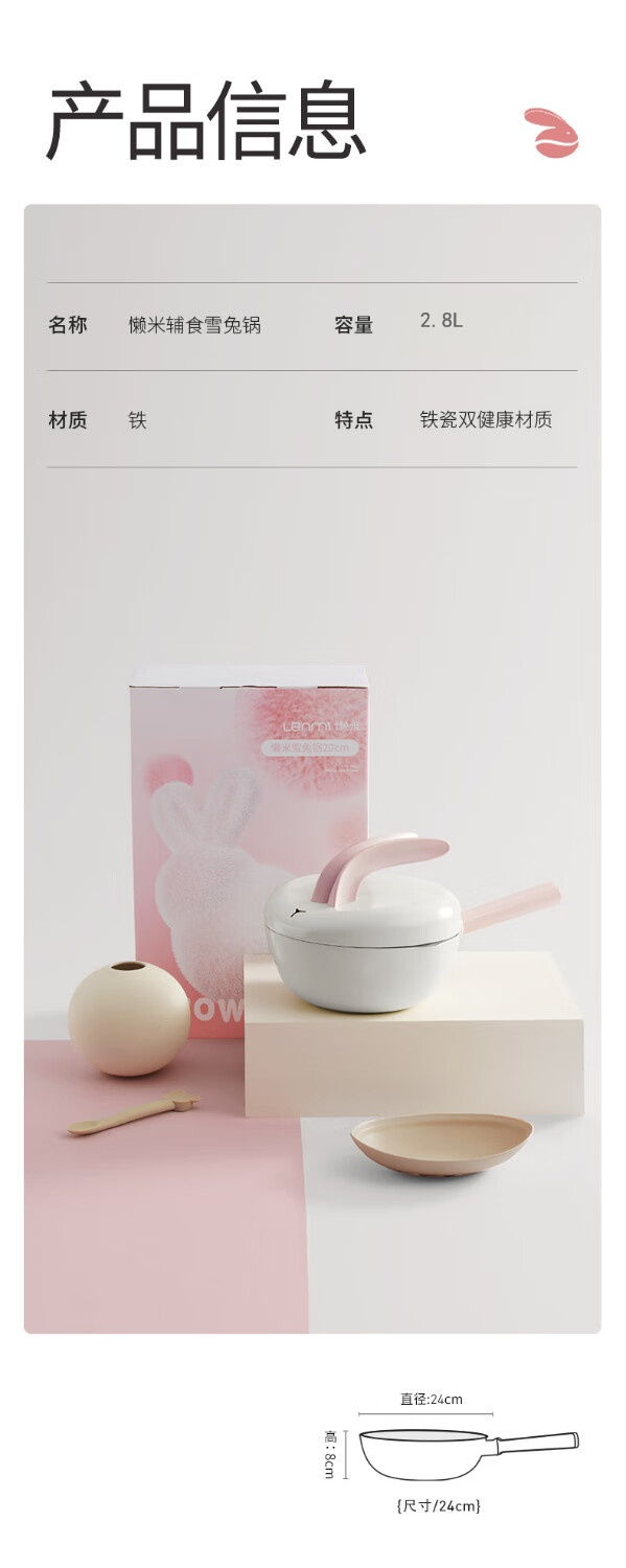 懒米 雪兔锅24cmLM-TT24A1 铁瓷材质不粘炒锅