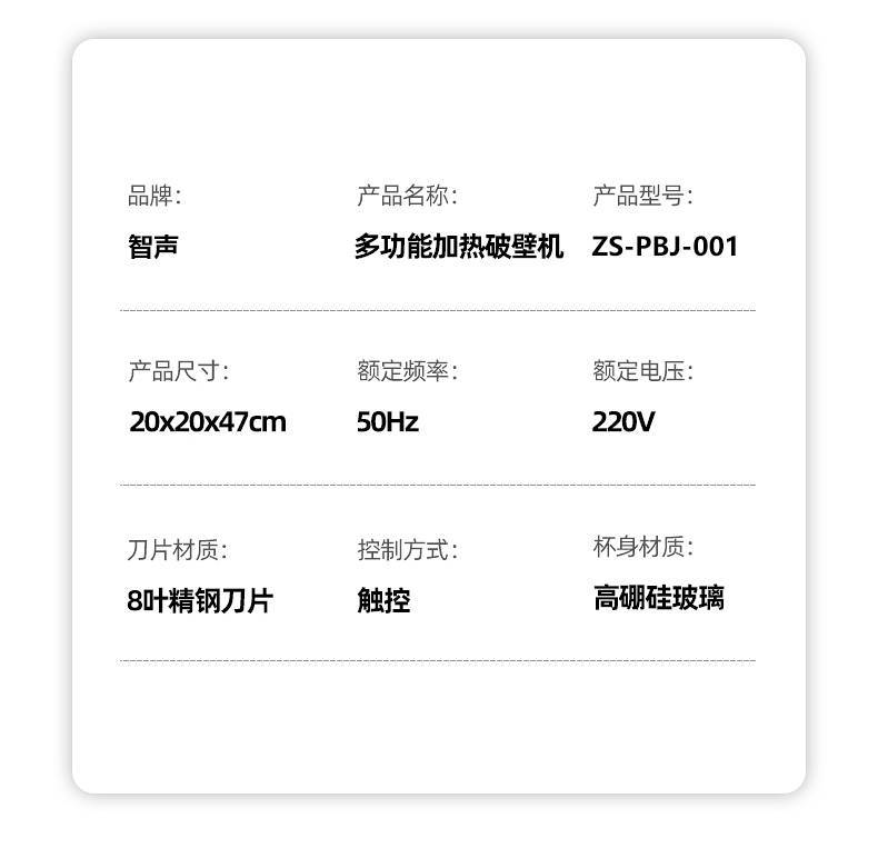 智声破壁机多功能干打磨粉加热豆浆机玉米汁米糊大容量豆浆机ZS-PBJ-001