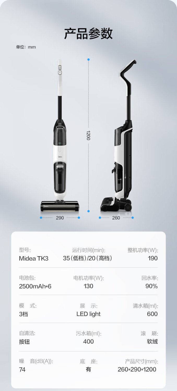 美的/Midea 无线洗地机TK3无尘感家用无线吸拖一体吸尘器手持拖把自清洁洗地拖地扫地机