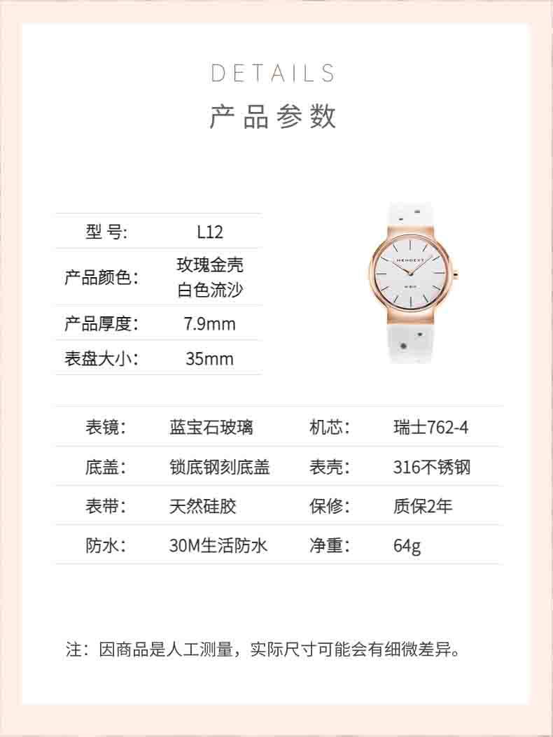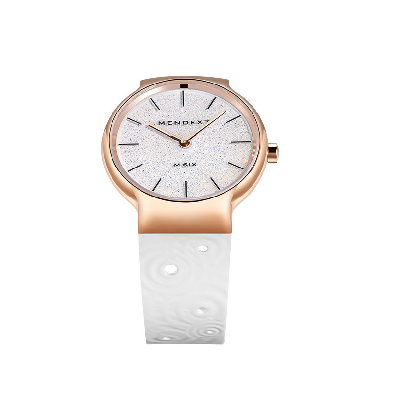 MENDEXT漫狄女士白色流沙面 IP镀玫瑰色表壳 白色表带M6IX-L12女士学生腕表手表