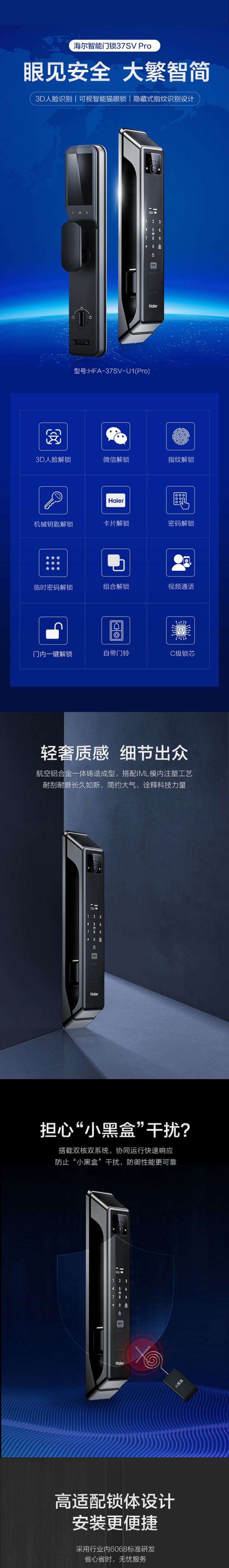 海尔/Haier 指纹锁 智能门锁指纹锁密码锁防盗门锁入户门智能锁HFA-37SV-U1(Pro)M送父母 送朋友 包安装