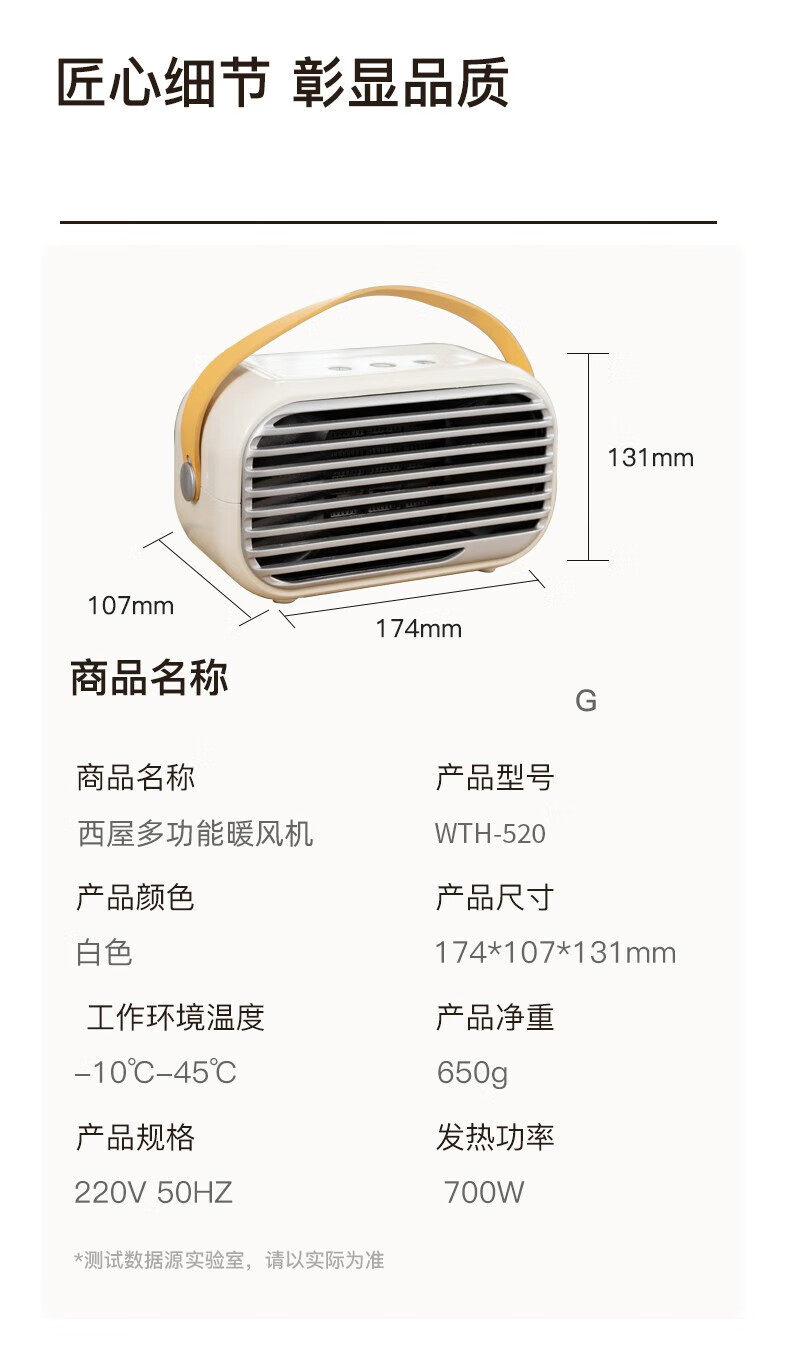 西屋Westinghouse桌面取暖器 电暖器 家用 办公 企业福利 WTH-520