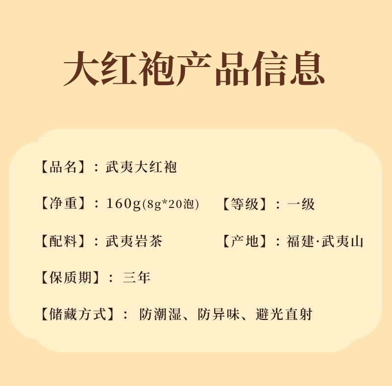 吉华湖夏武夷岩茶大红袍茶叶礼盒装茶叶8g*20泡共计160克/盒 吉华湖夏精美手提茶叶礼盒