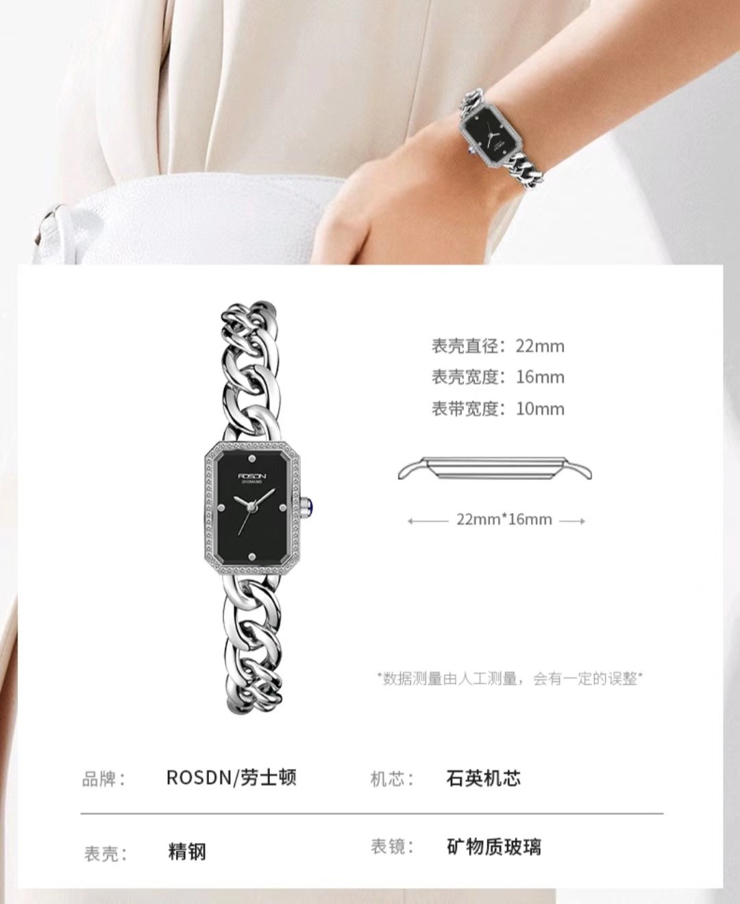 劳士顿手表方形镶钻女表简约甜美气质女表石英女表L3819