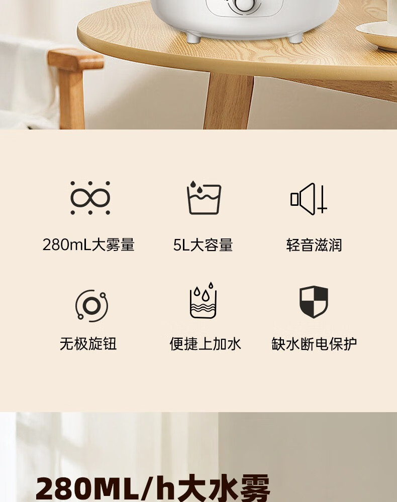 亰维渡水滴空气迷你小型加湿器办公室桌面家用加水大容量净化加湿机