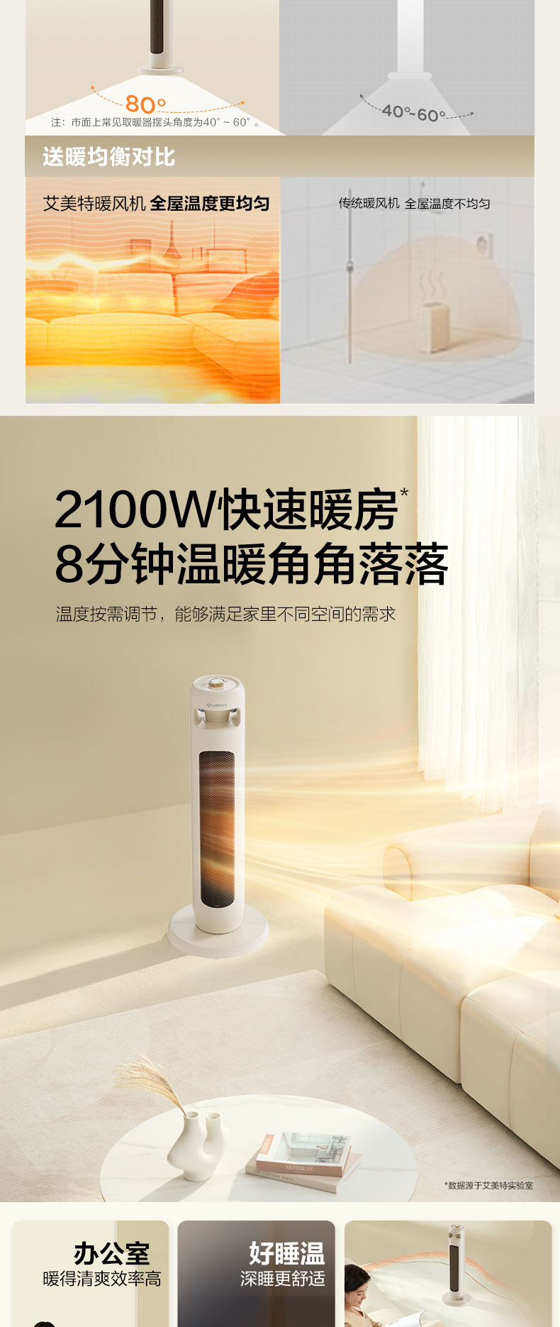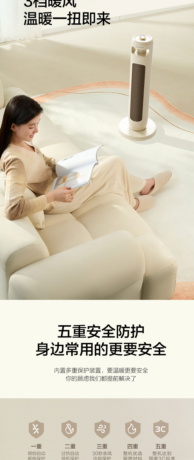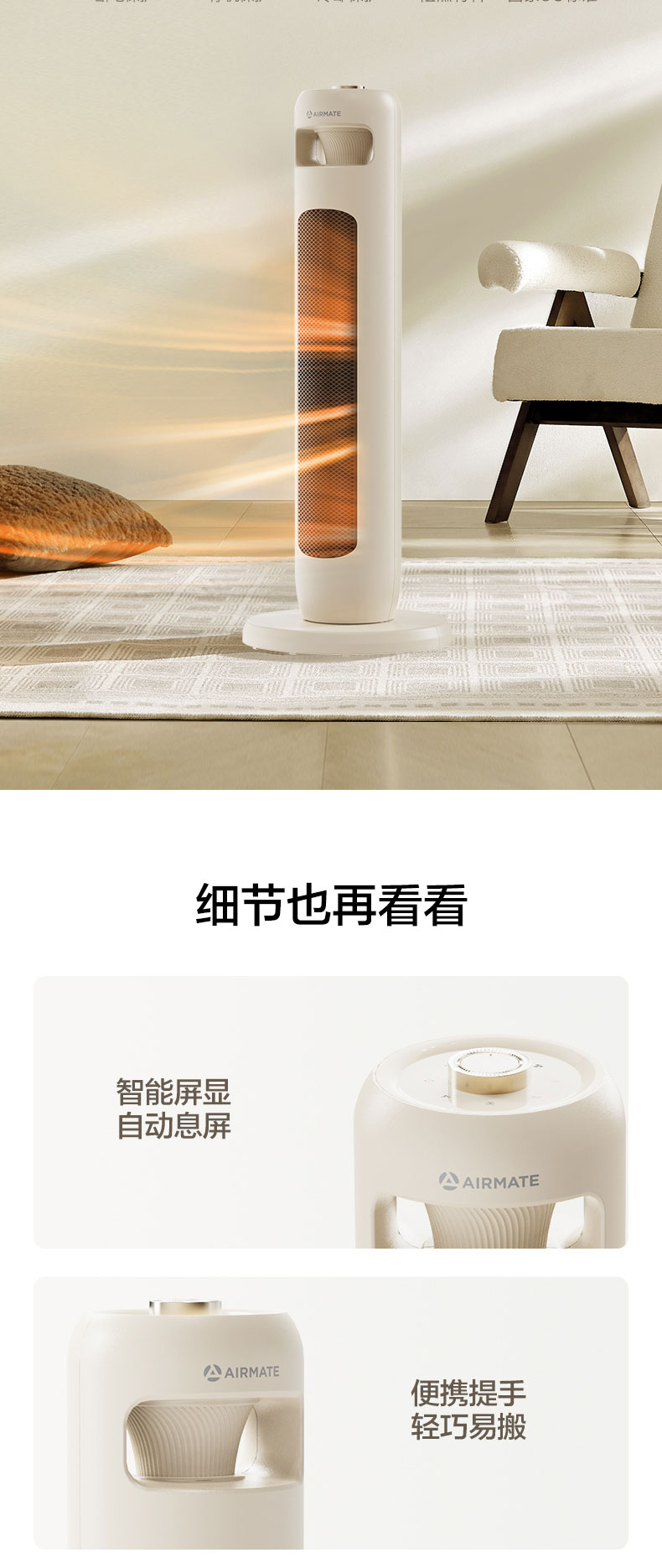 艾美特AIRMATE 塔式暖风机 机械石墨烯取暖器塔扇暖扇电暖器 HP21-K102