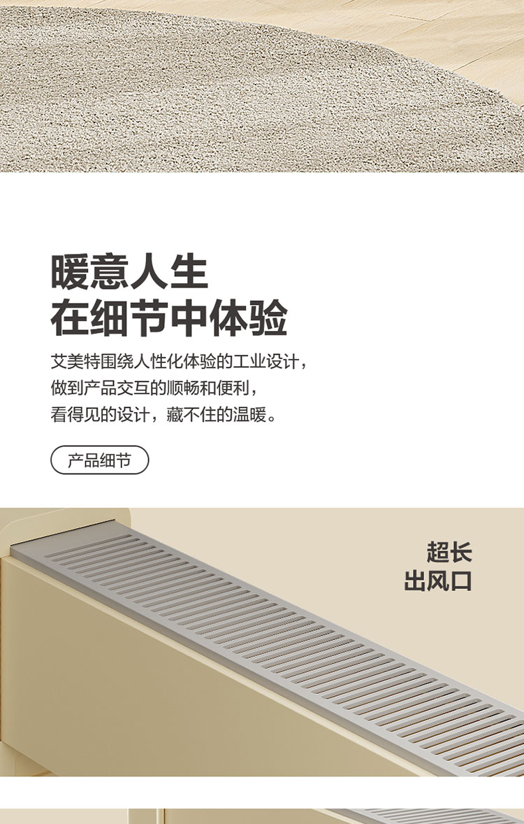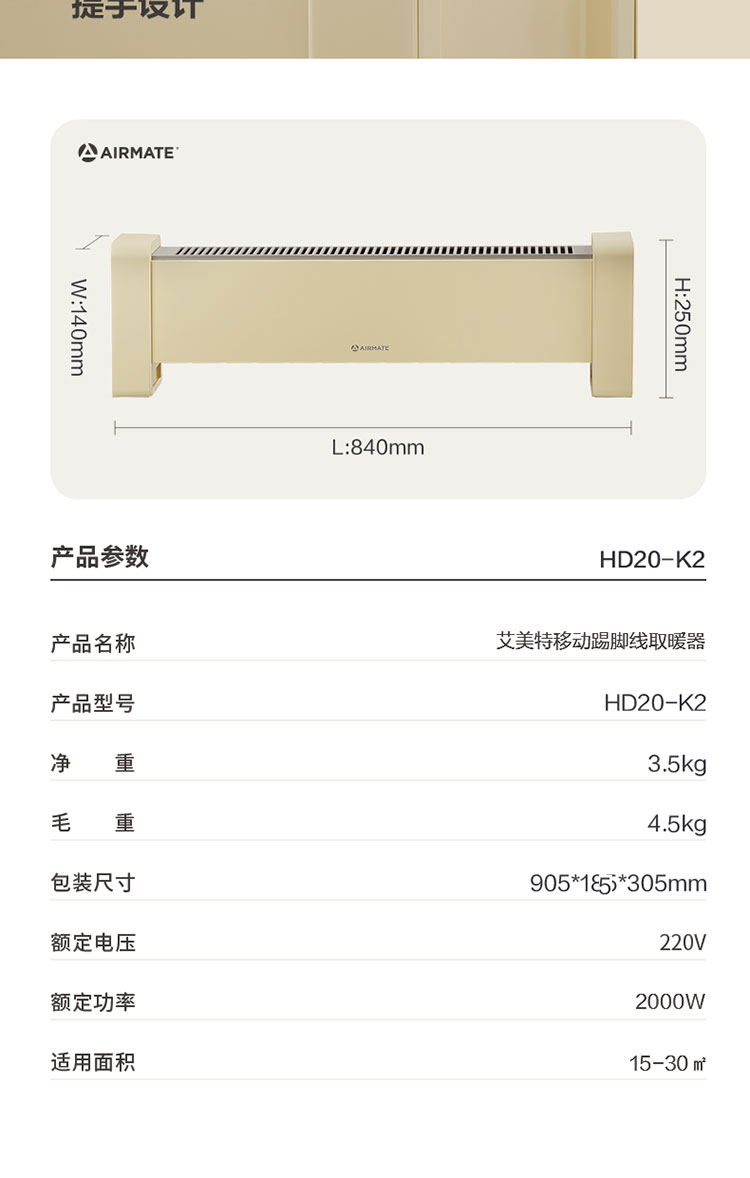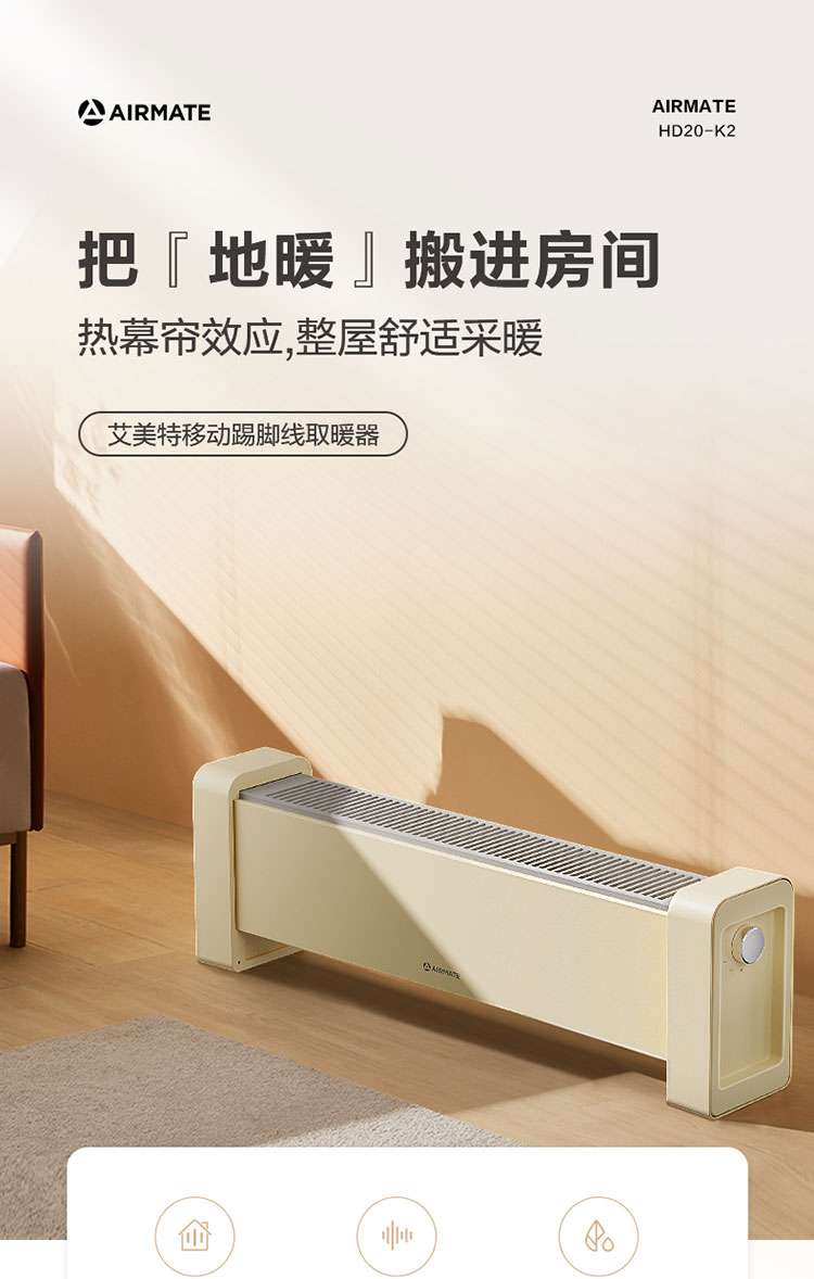艾美特AIRMATE 移动踢脚线 家用取暖器电暖器 暖风机HD20-K2