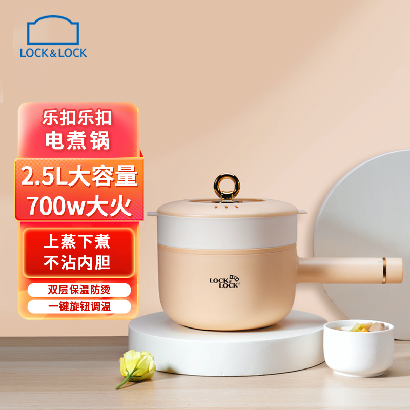 乐扣乐扣电煮锅宿舍学生锅家用多功能电煮锅EJP1237ORG