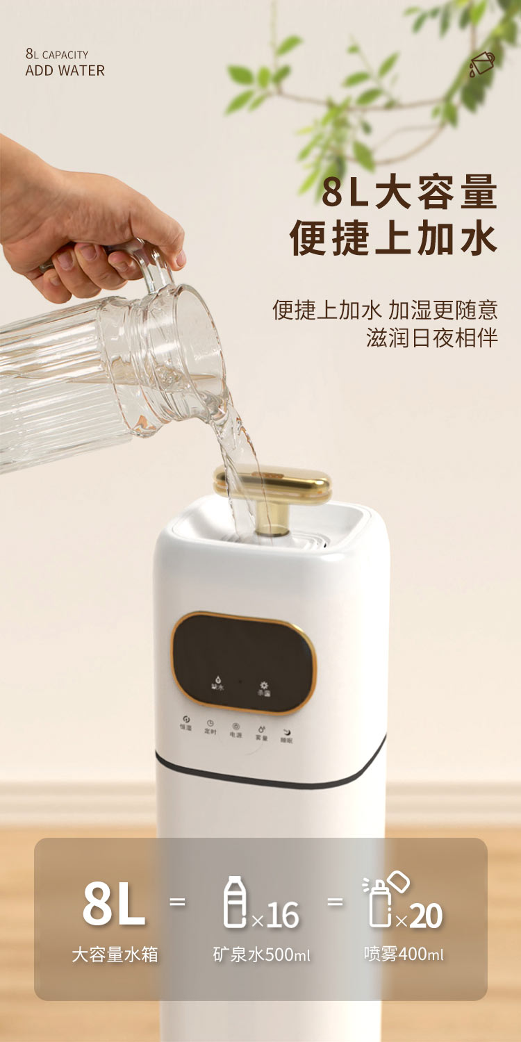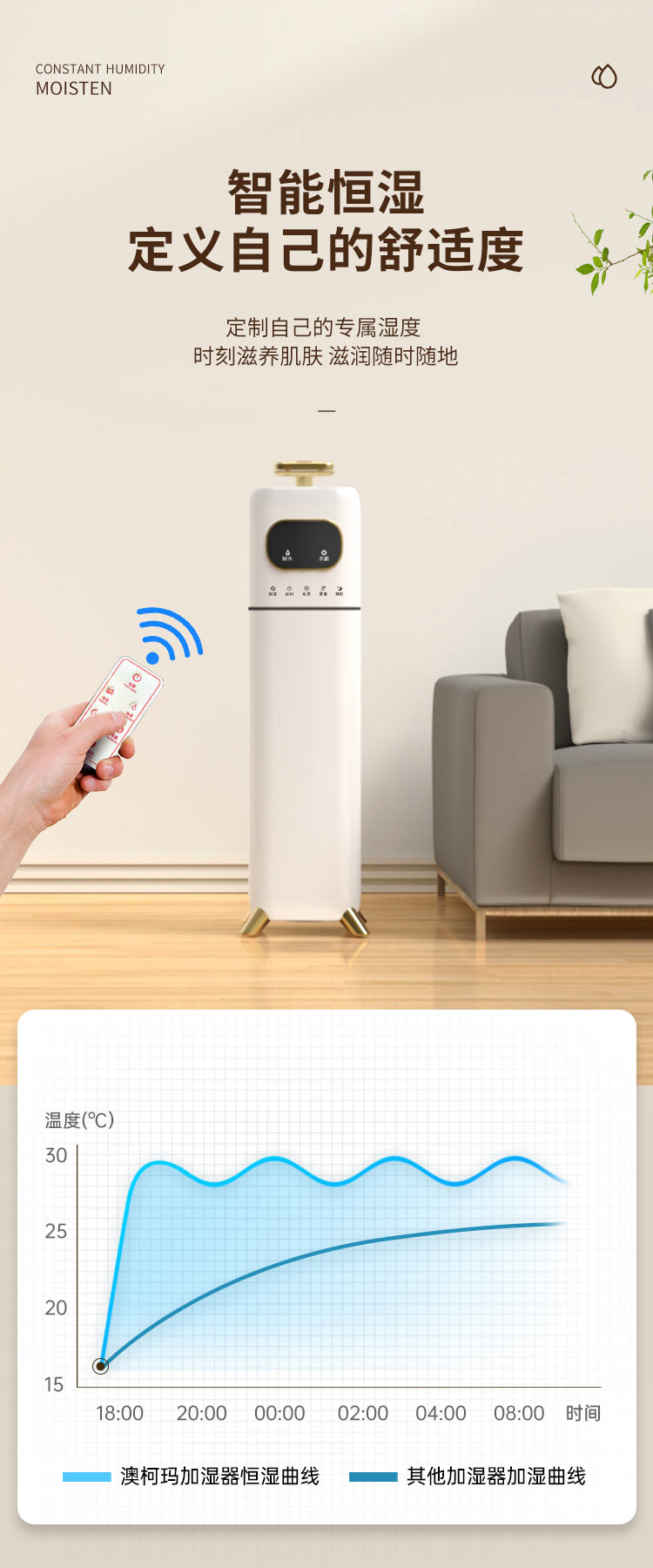 澳柯玛 加湿器JSC-916B 智能恒湿系统 卧室婴儿办公室家用加湿器 遥控定时8H 8L大容量上加水加湿 低噪静音