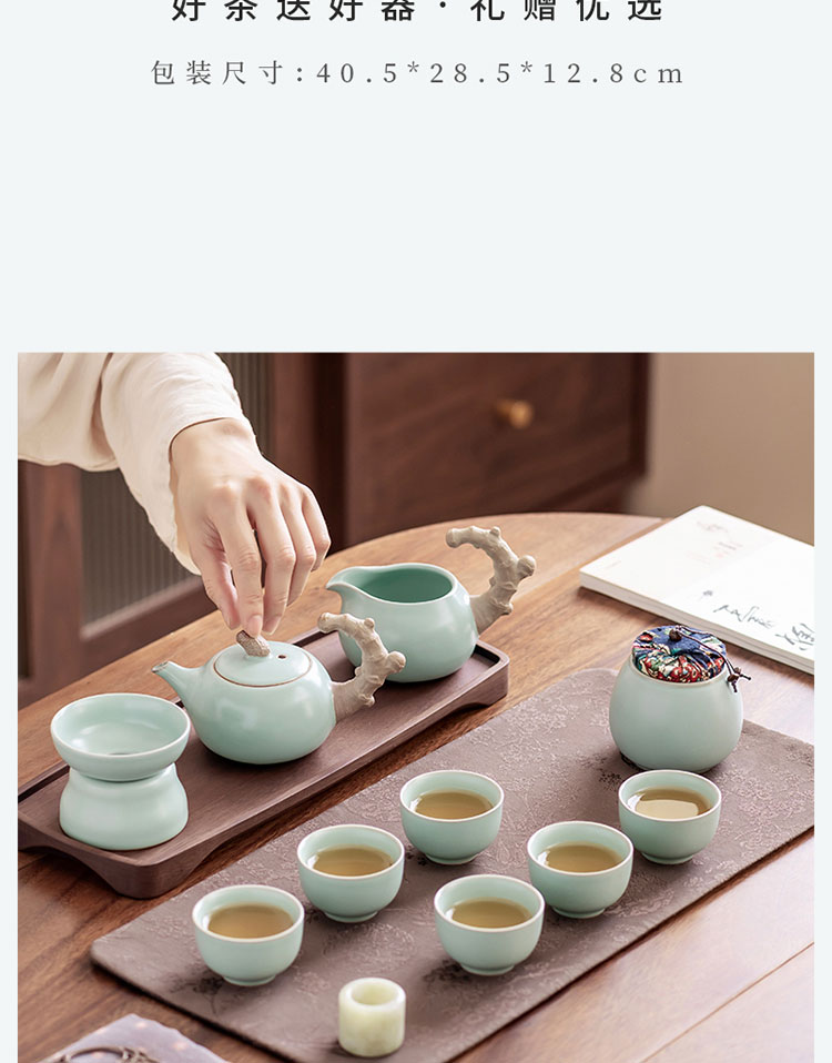 【好评500+】普区包邮八方礼陶瓷汝窑茶具好事将发生茶具家用或商务送礼11头BFL2024-15