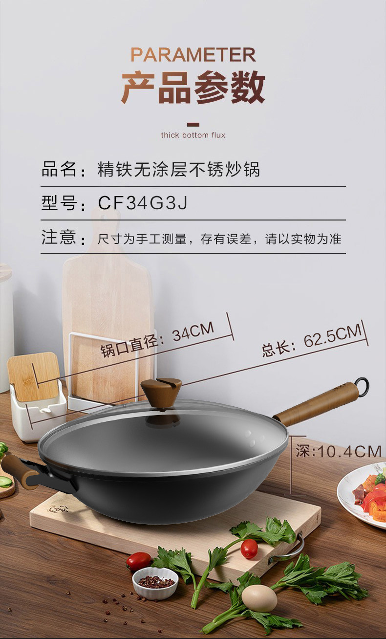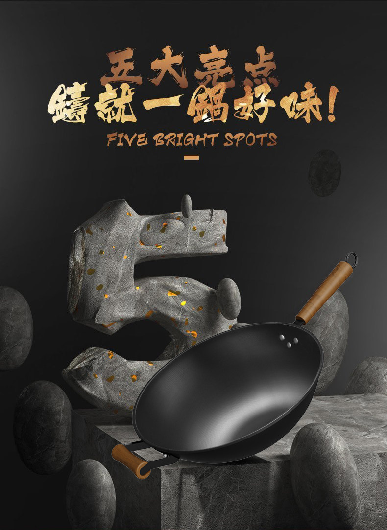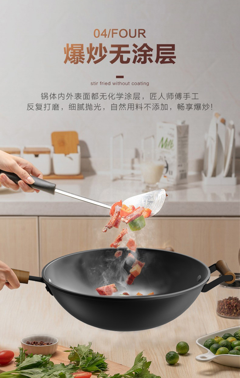 爱仕达CF30G3J精铁无涂层不锈炒锅30CM