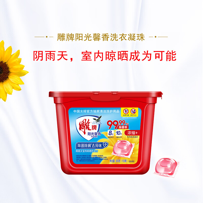 【100颗】雕牌除菌除螨洗衣凝珠800g