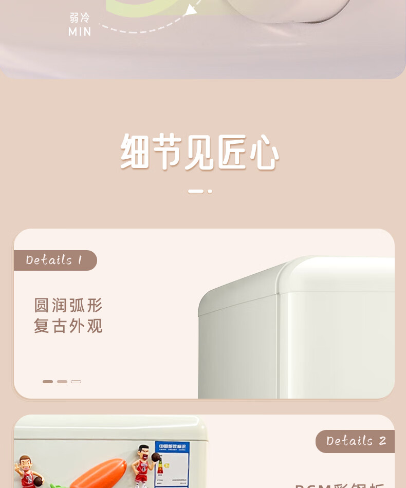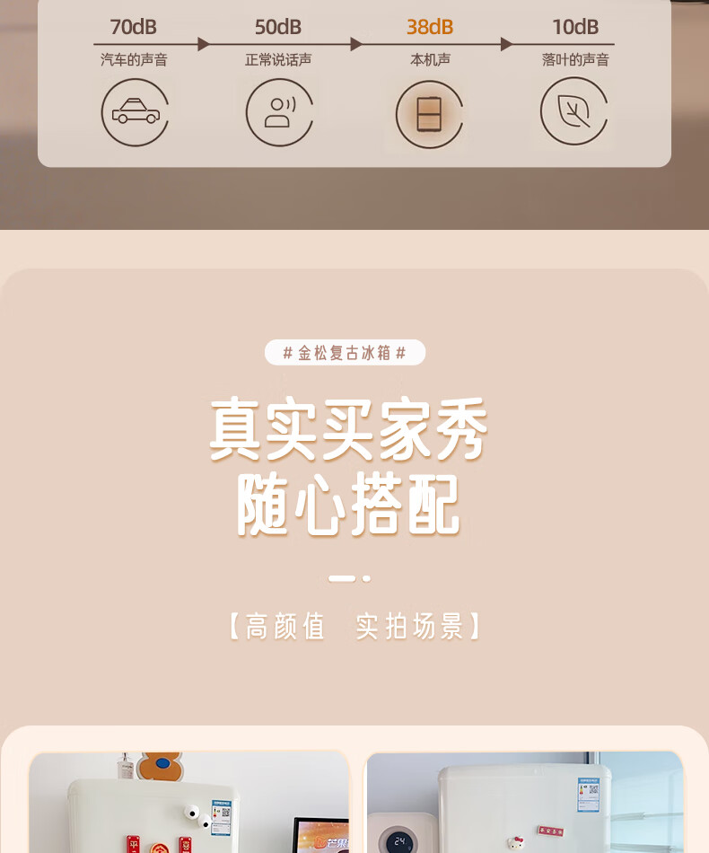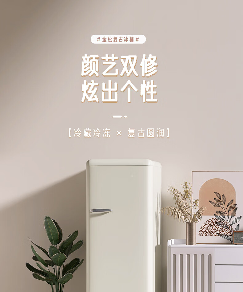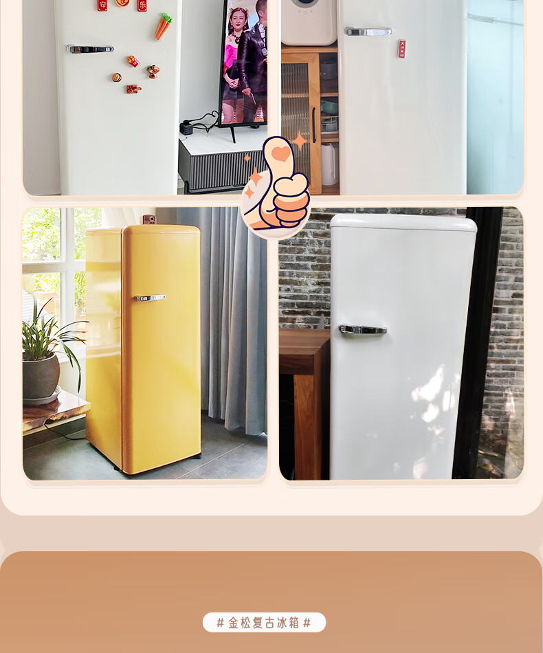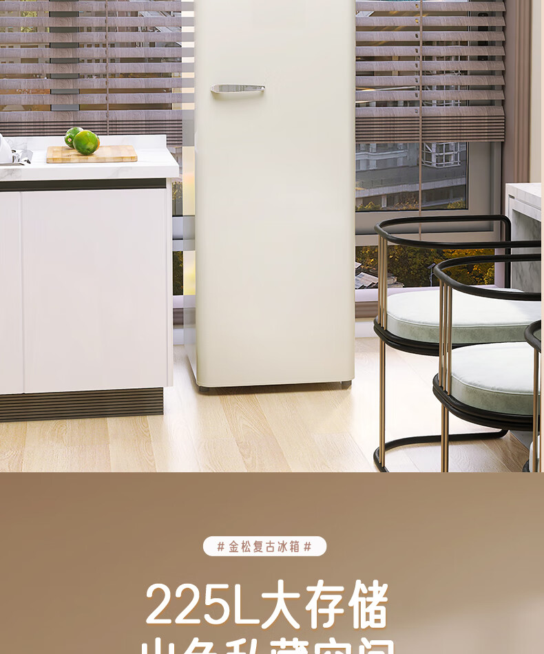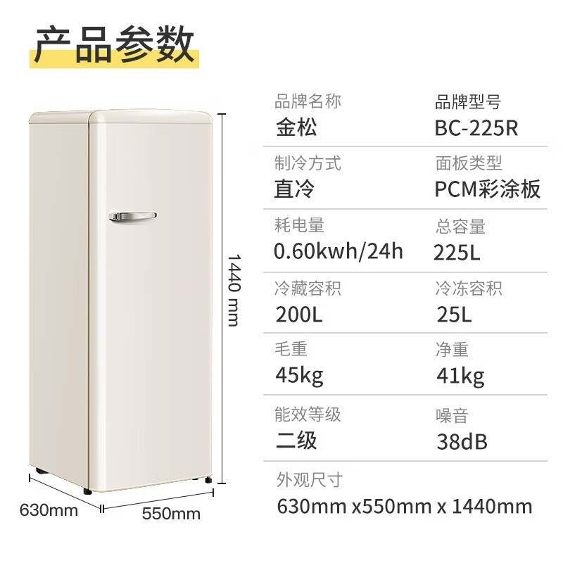 金松JINSONG 单门冰箱225L复古冰箱冷冻冷藏家用小电冰箱BC-225R