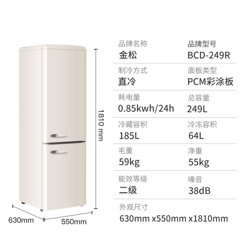 金松JINSONG 双门冰箱249L冷藏冷冻冰箱家用电冰箱复古冰箱BCD-249R