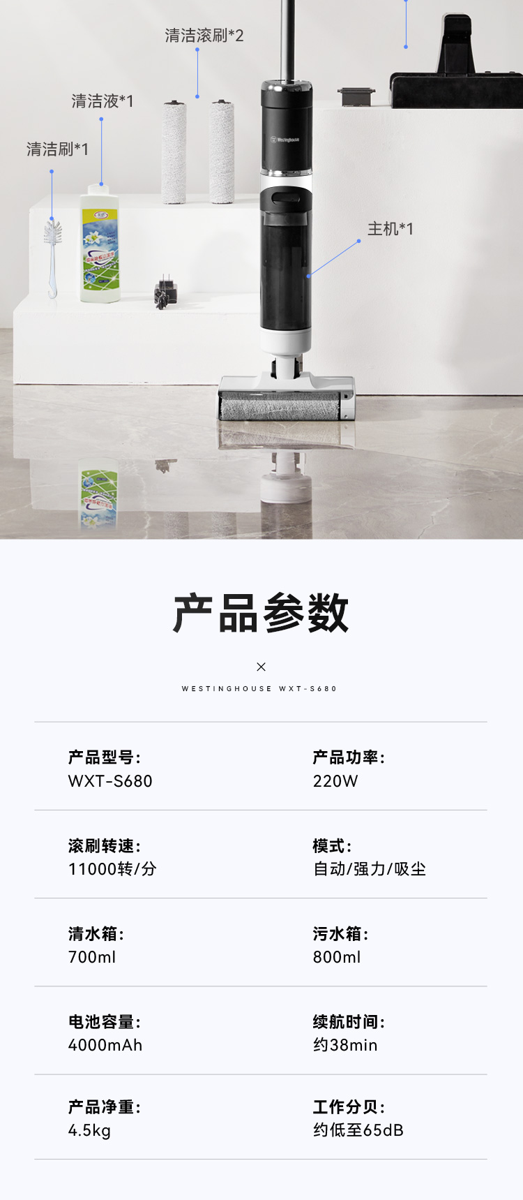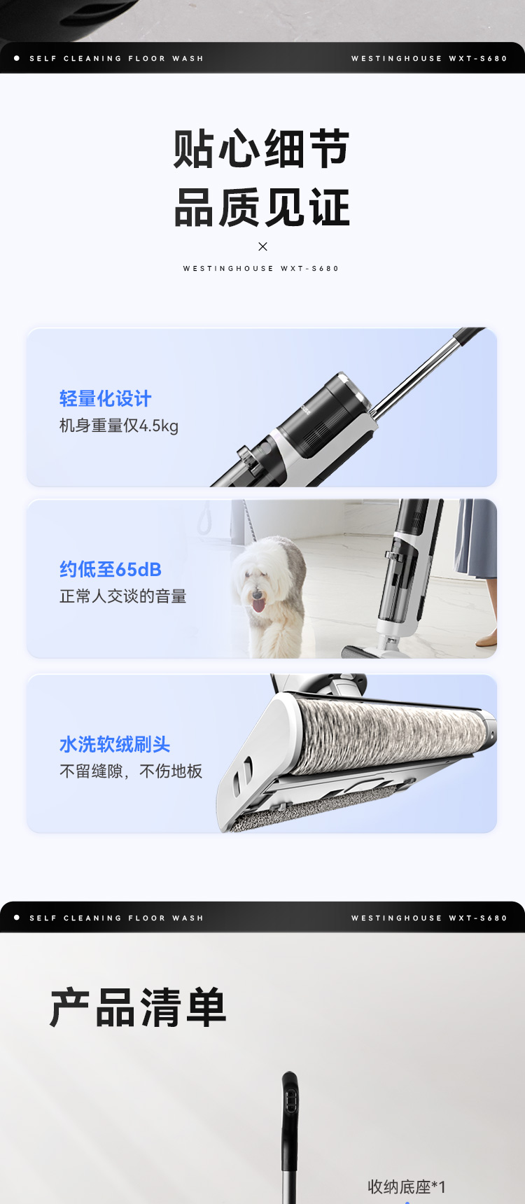 西屋智能洗地机3.0全新升级双滚刷自清洁烘干免手洗吸拖一体机 WXT-S680
