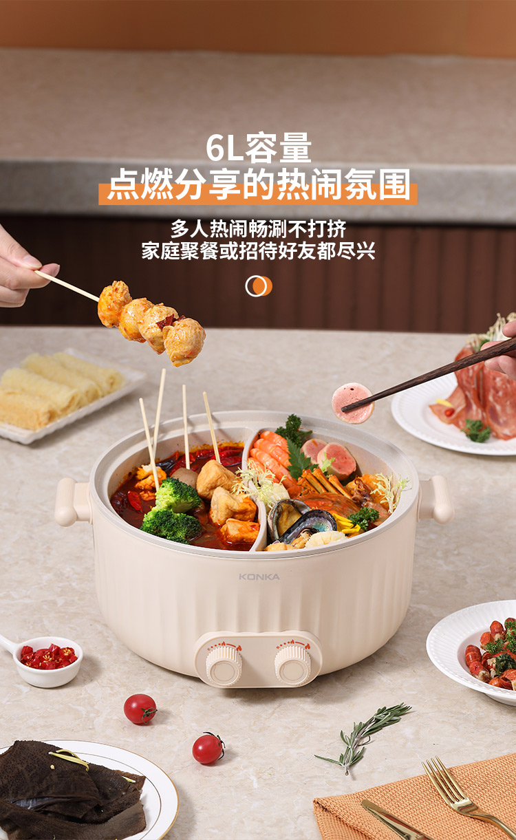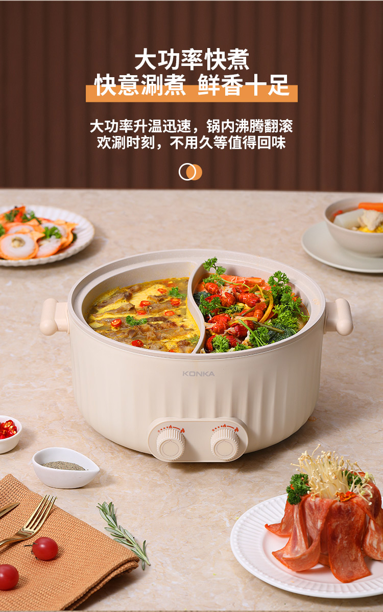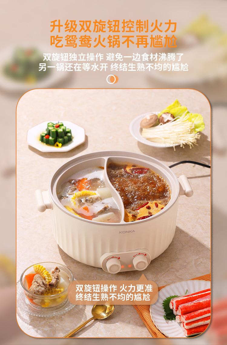 康佳/KONKA 多功能鸳鸯电火锅 双旋控温大容量火锅 家庭聚餐朋友聚会 KDHG-6029-M