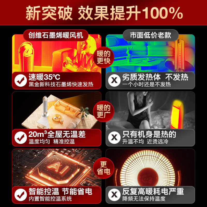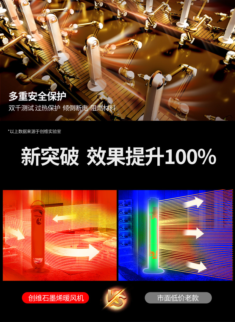 创维取暖器石墨烯高塔智能语音声控暖风机家用办公恒温省电 象牙白-A813