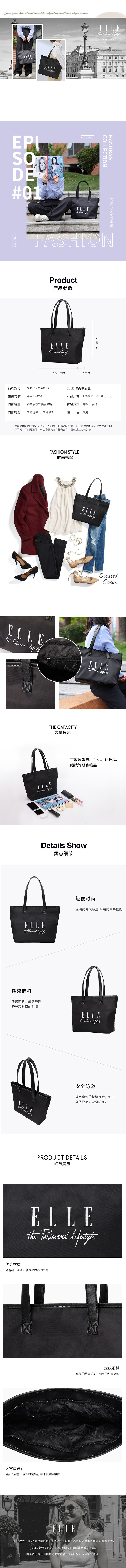 ELLE 时尚单肩包GH162P90201BK 黑色 规格: 400*280*115mm