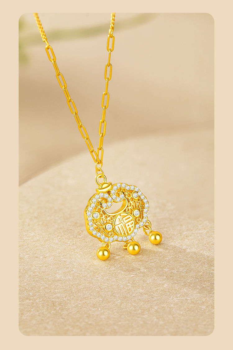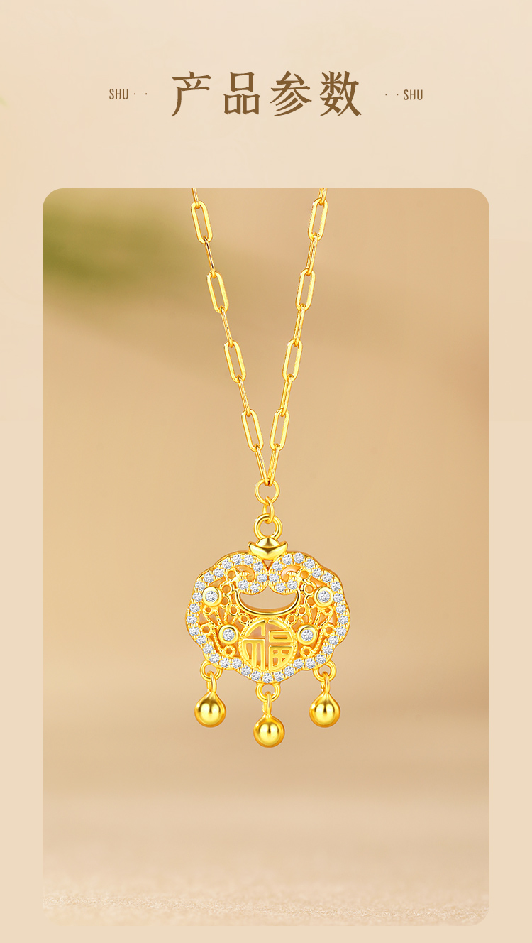 【每证一品】周六福S925银如意平安锁白贝套链ZLFJ062318