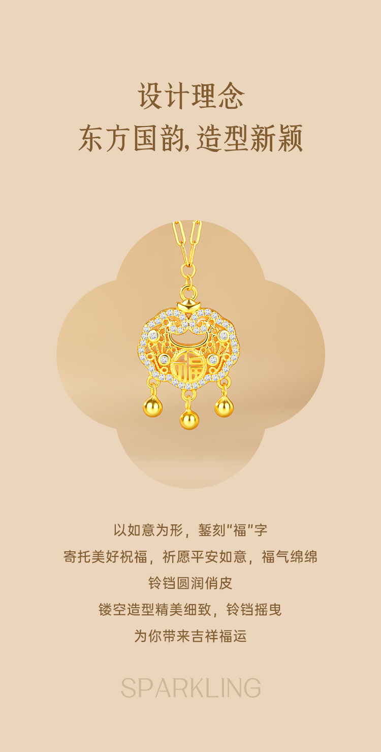 【每证一品】周六福花开富贵5D硬金吊坠ZLFA041951