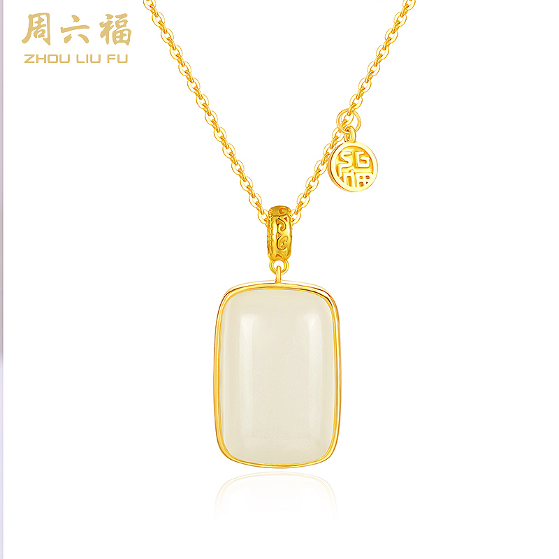 周六福白玉无事牌S925银和田白玉项链ZLFY061616