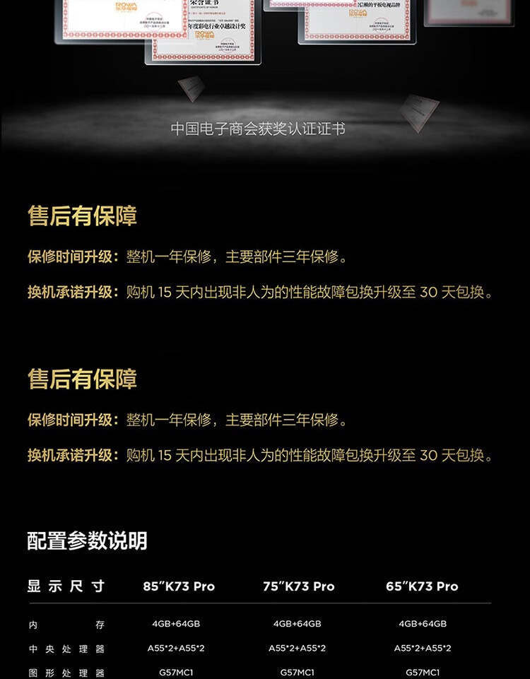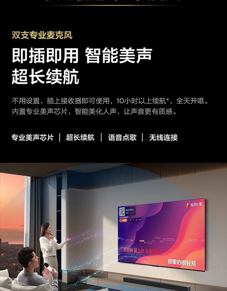 乐华K歌电视 85K73 Pro 85英寸 4+64G 4K HDR10 120Hz MEMC AI远场语音四重护眼 专业K歌系统 液晶平板电视机 (送2.1声道120W独立音响 送两只专业麦克风) 【西藏不发】