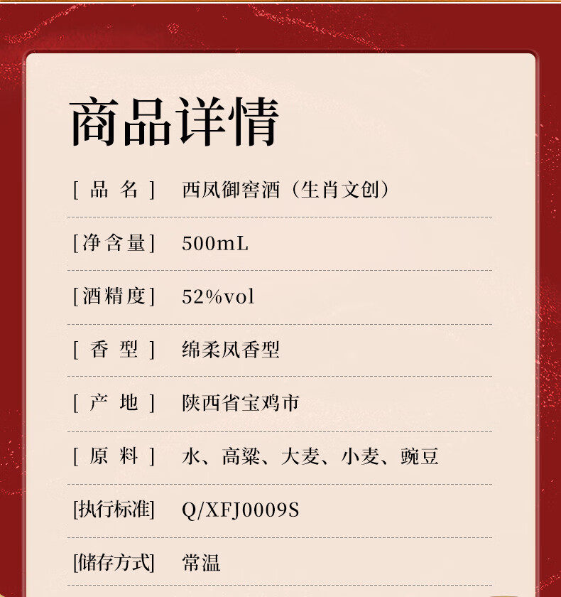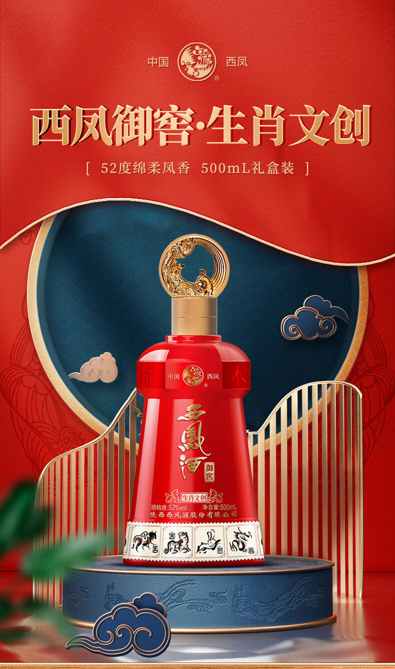 【整箱】西凤酒 52度 绵柔凤香型白酒 御窖 (生肖文创) 500ml*6瓶