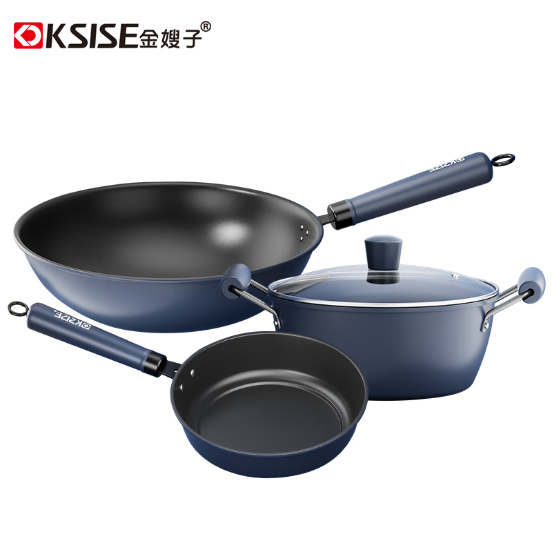 包邮 金嫂子 紫气东来厨房锅具三件套 精美彩盒装 炒锅 炖锅 煎锅 KST2245TZ3