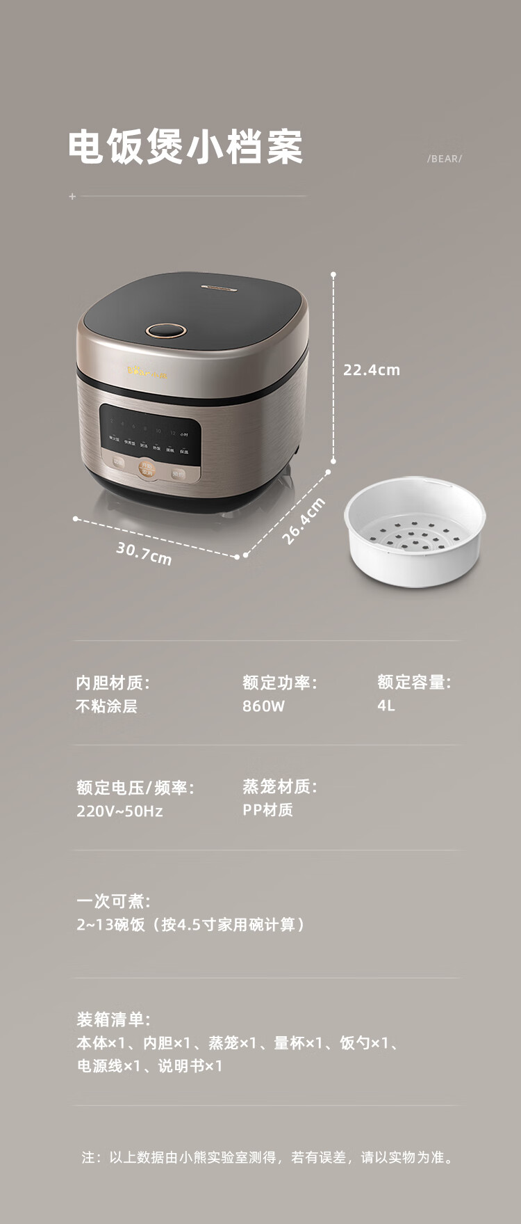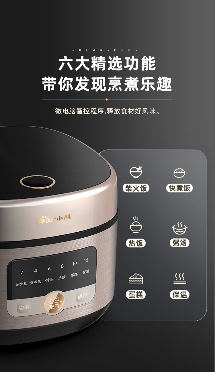 小熊Bear 4L多功能预约柴火元釜内胆电饭煲 12小时预约 DFB-Q40G5