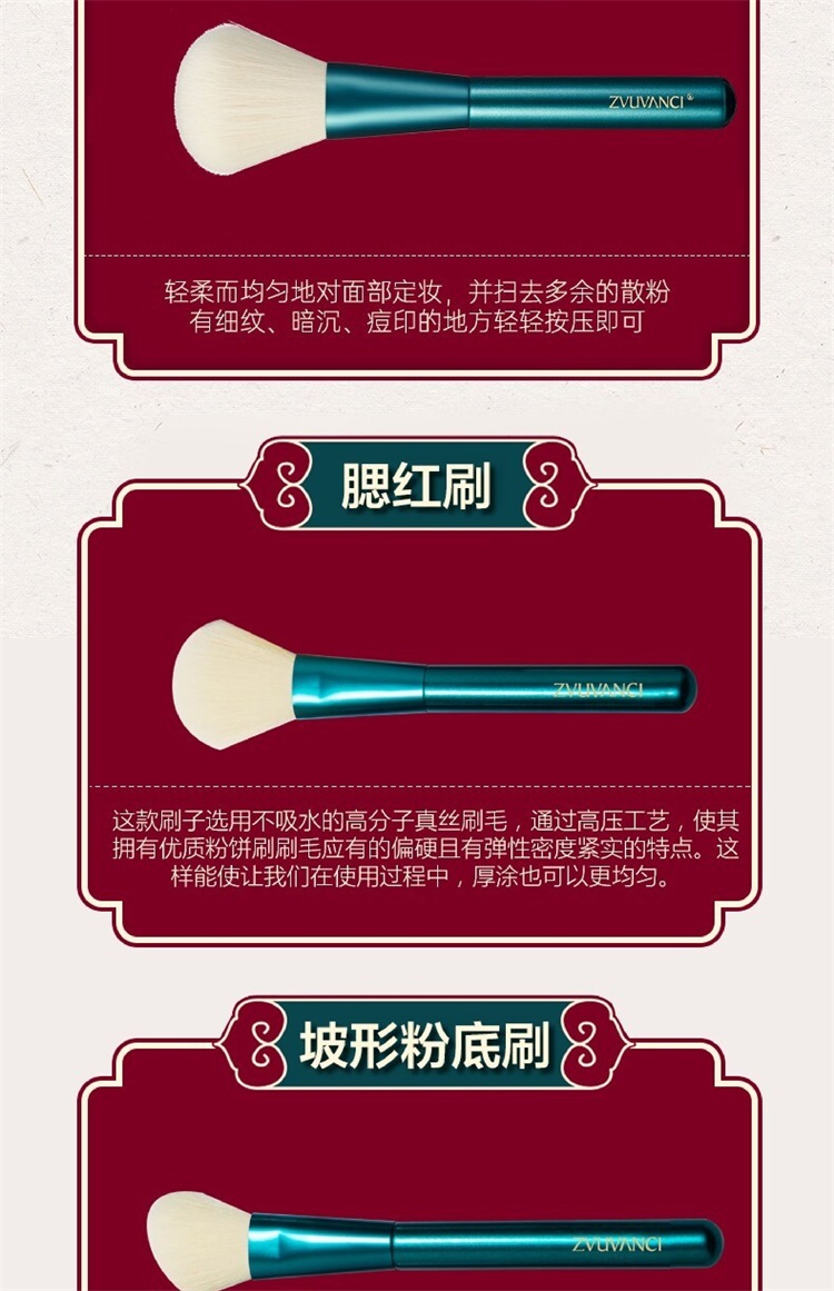 竹梵希化妆刷套装11件套 便携化妆刷组合套刷软毛化妆套
