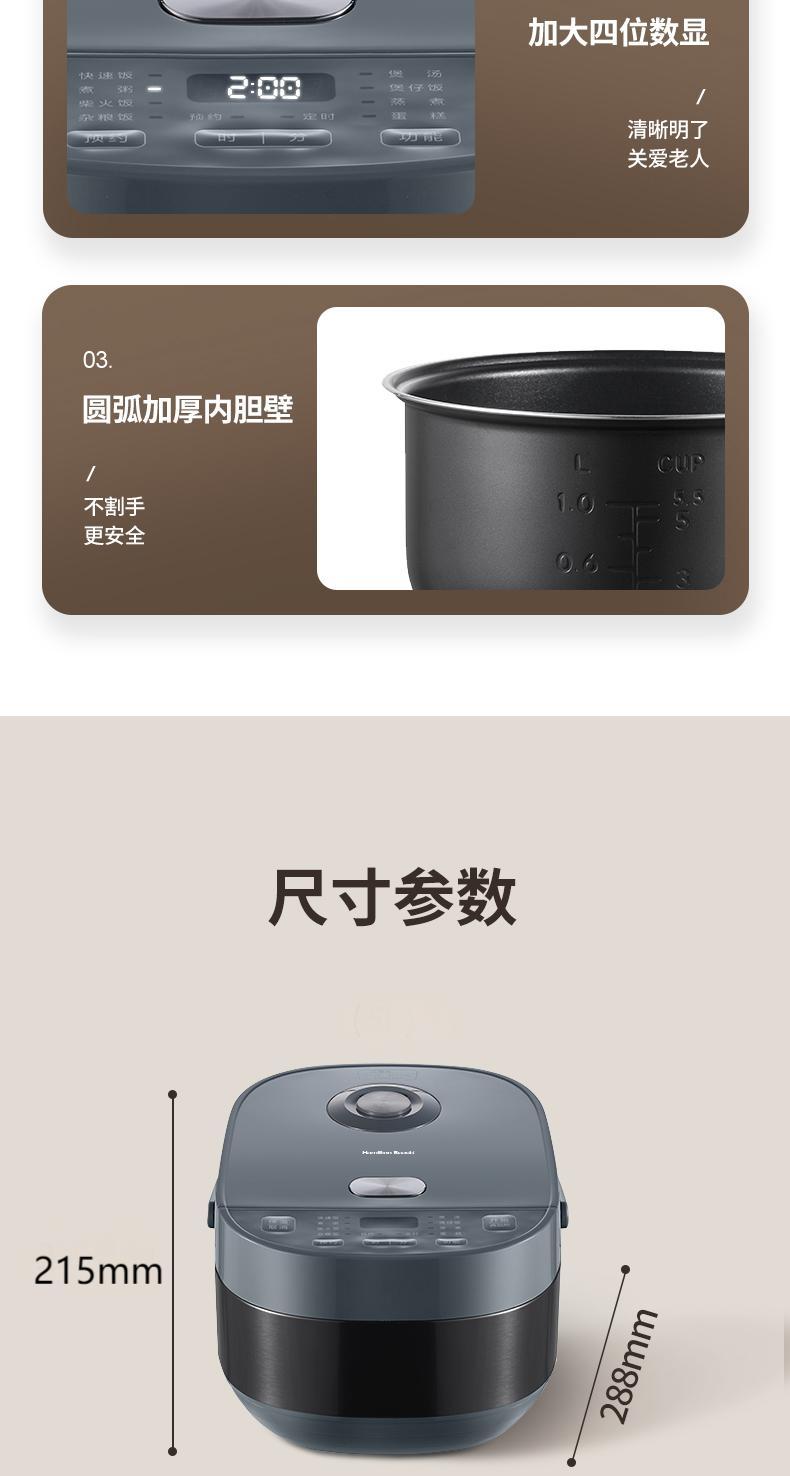 汉美驰电饭煲家用大容量电饭锅多功能智能预约大功率不沾锅内胆饭锅RC40101【4L快速煮饭】RC40101(4L)