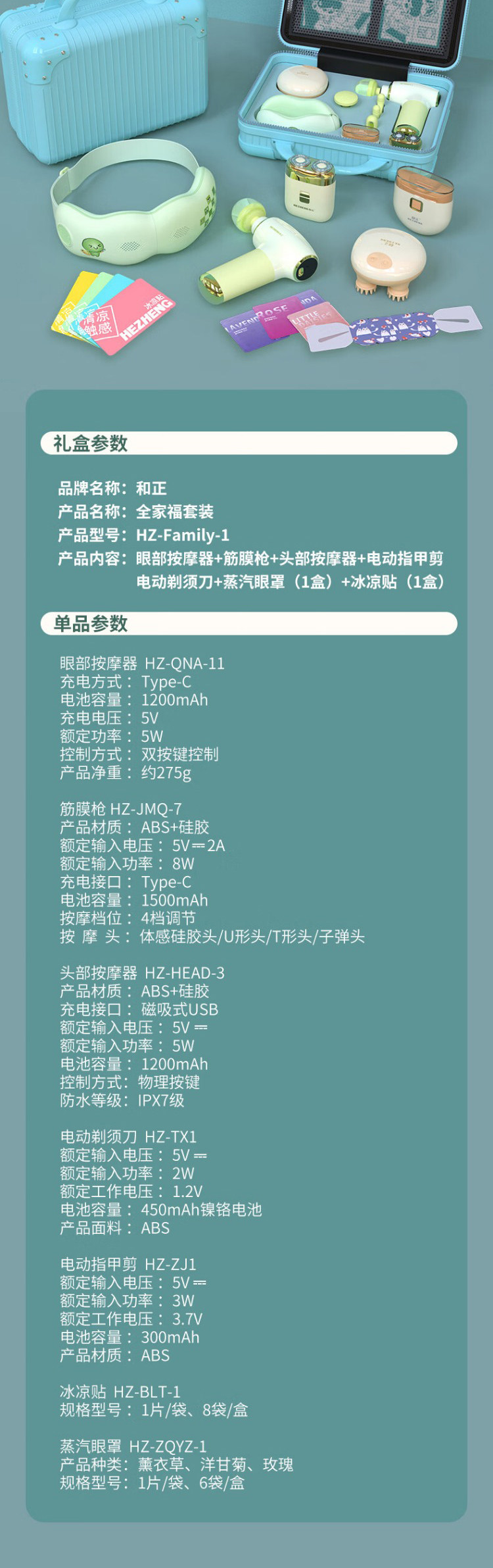 和正全家福套装紧致健康礼头部眼部按摩器筋膜枪电动剃须刀伴手礼HZ-Family-1