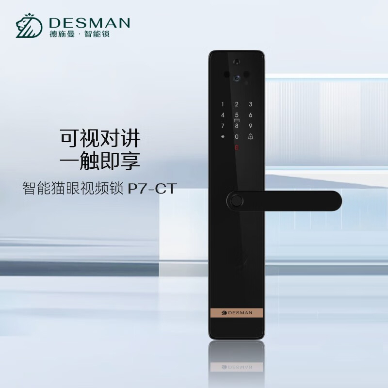 德施曼DESMAN智能门锁猫眼视频锁防盗门锁 指纹锁升级款电子锁密码锁小嘀P7-CT 典雅黑 送父母 节日好礼
