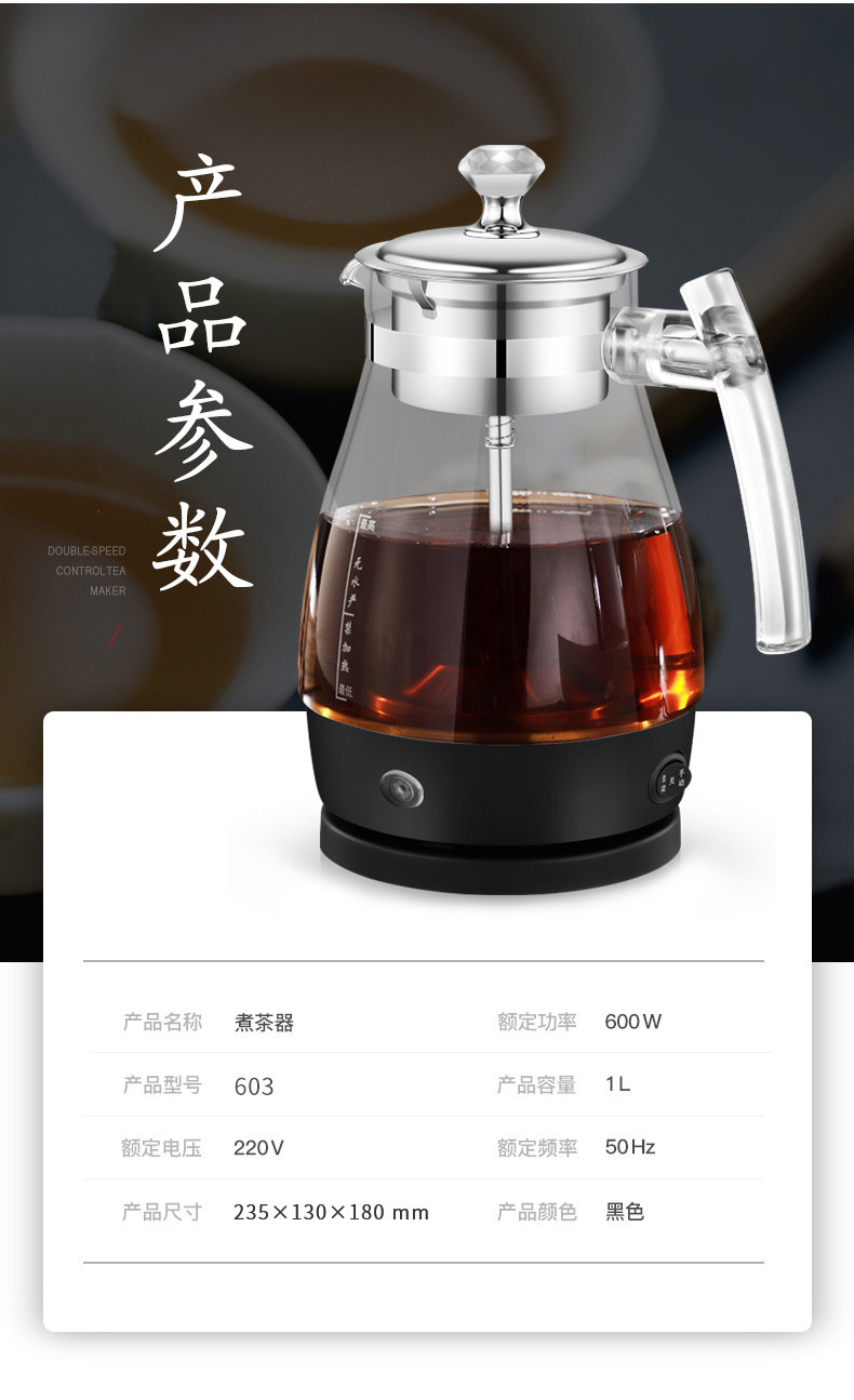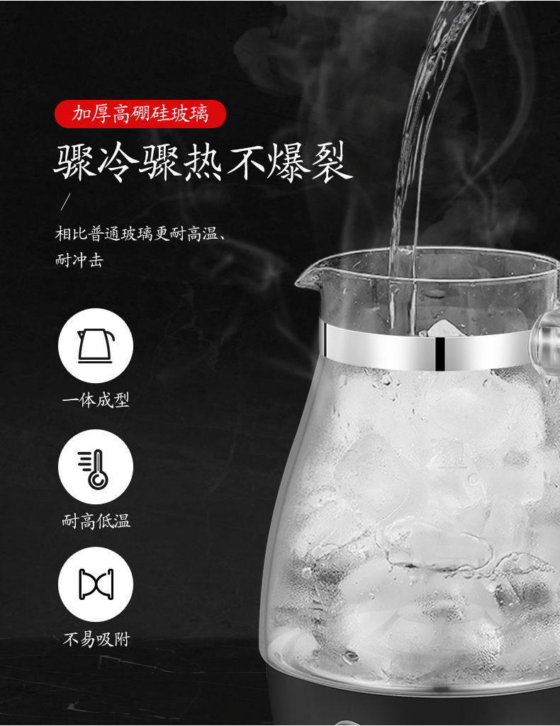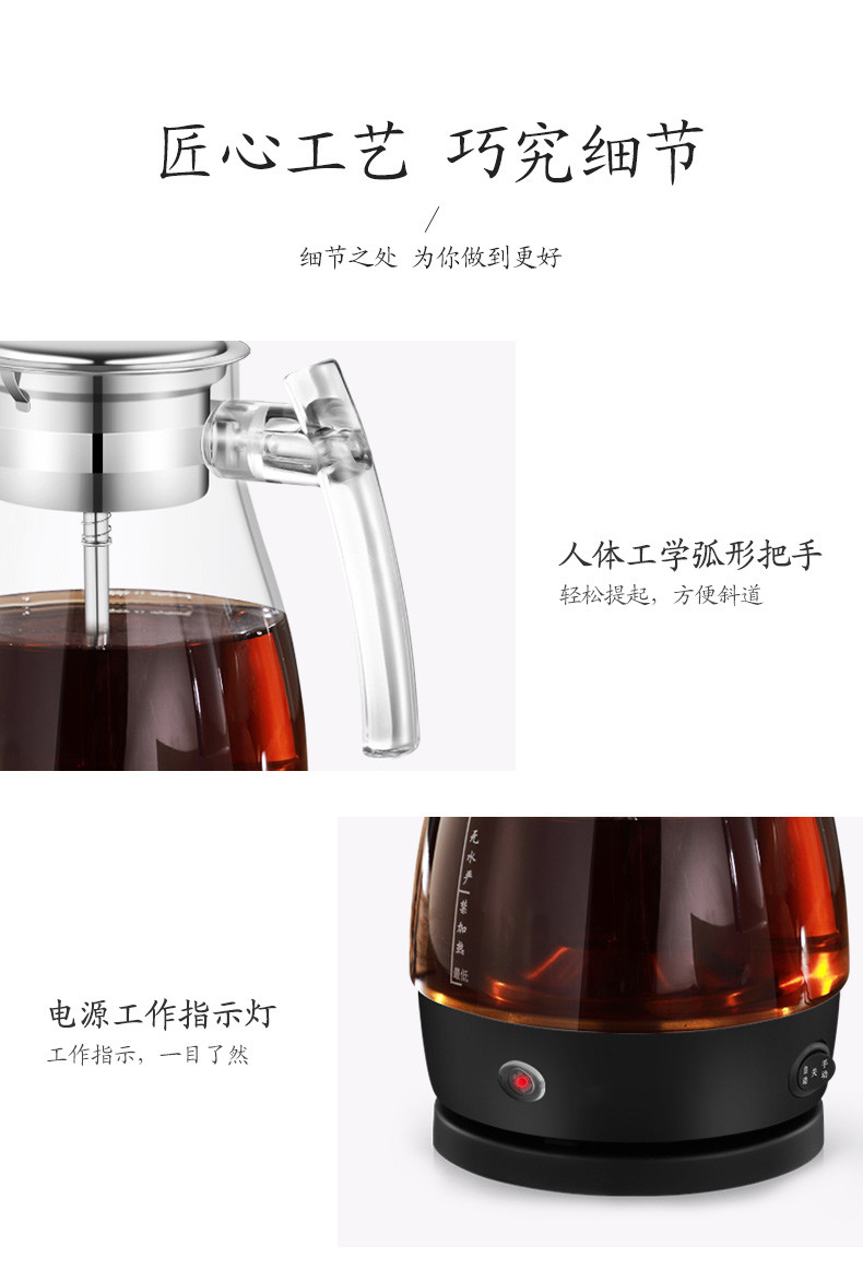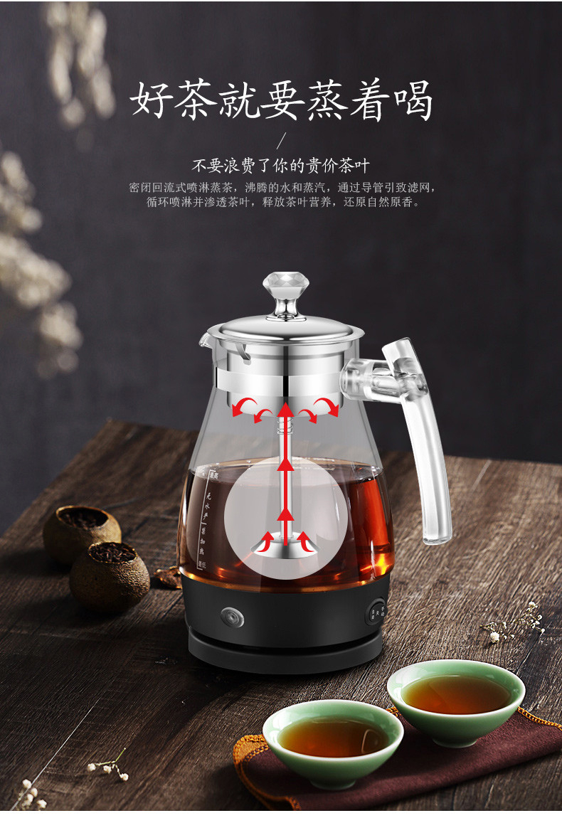 佳斯多 家用多功能玻璃电热水壶煮茶器 304不锈钢全自动保温蒸汽养生壶 型号:603