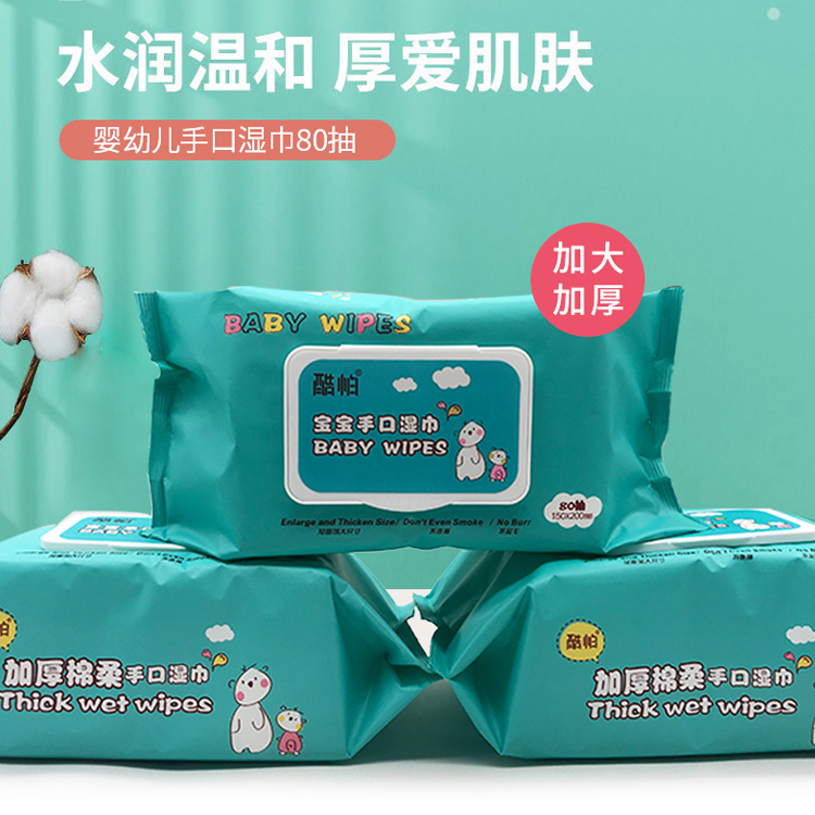 【3包】酷帕加大加厚胖娃娃婴儿湿巾手口专用大尺寸80抽*3包150*200mm