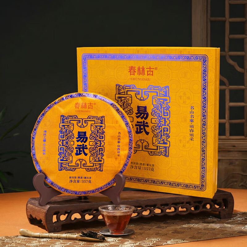 春林古普洱茶易武古树普洱茶《熟茶》名山名寨头春头采茶叶357g礼盒装