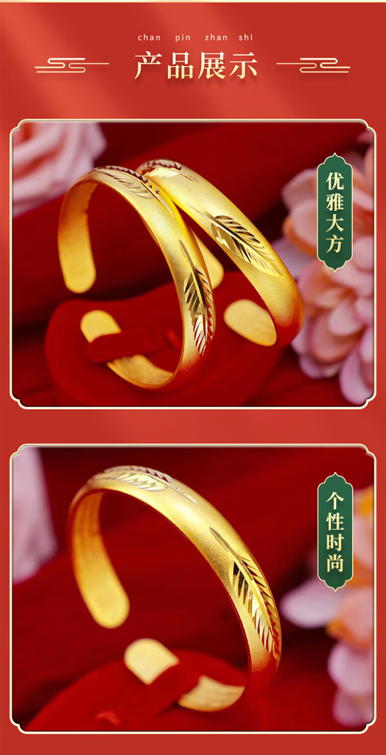 【每证一品】囍蓝古法镀金合金手镯一叶暴富手镯XLTY710709