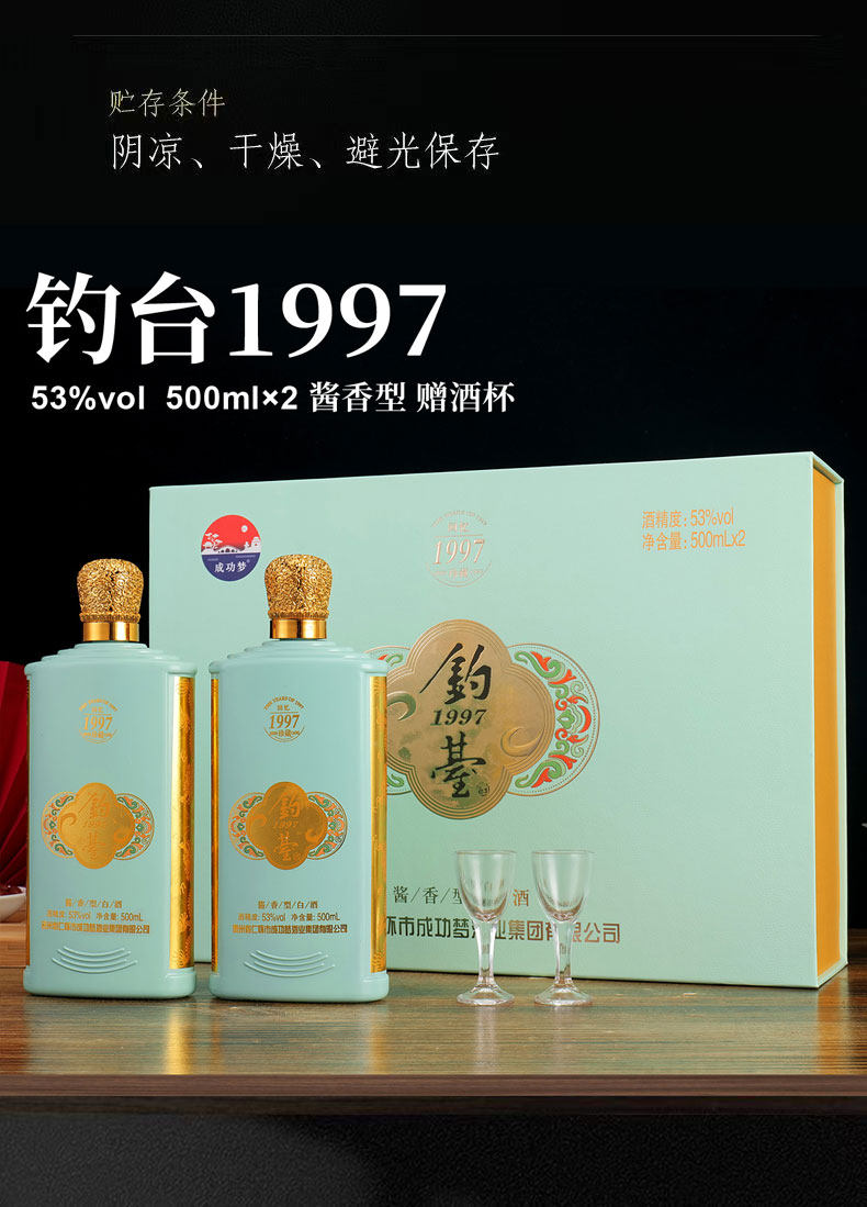 钓台1997 酱香型白酒 53度 500ml*2瓶礼盒装