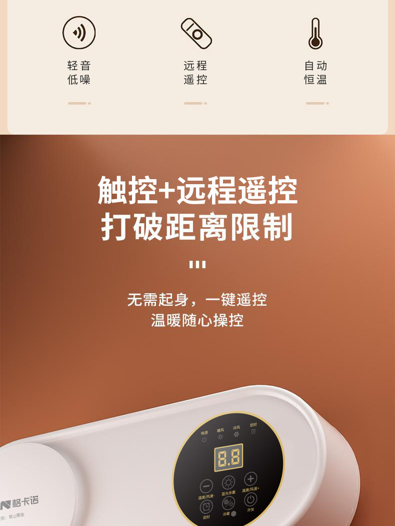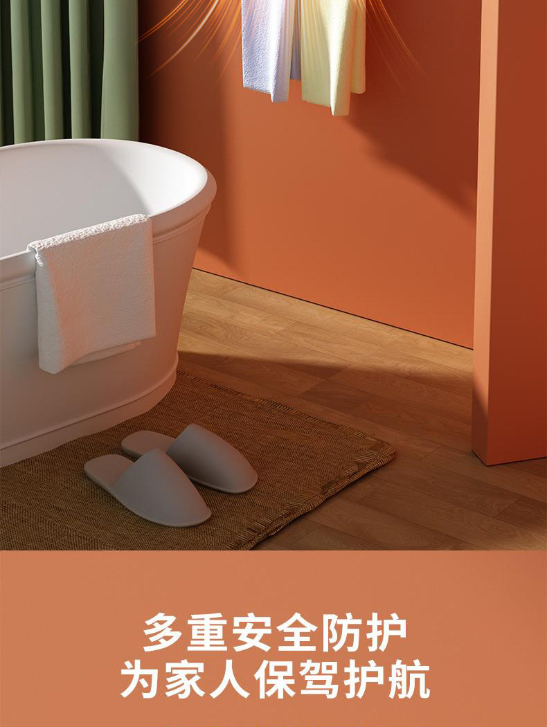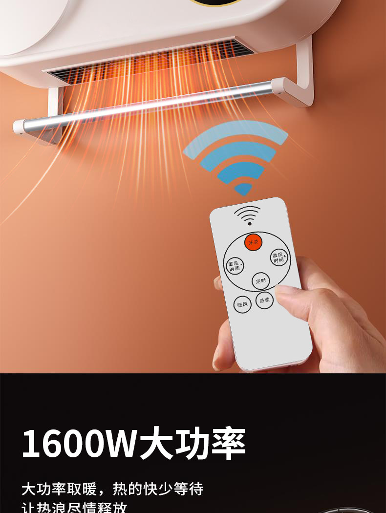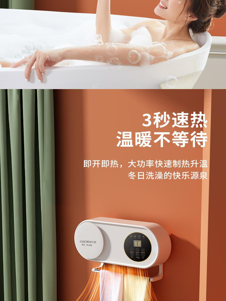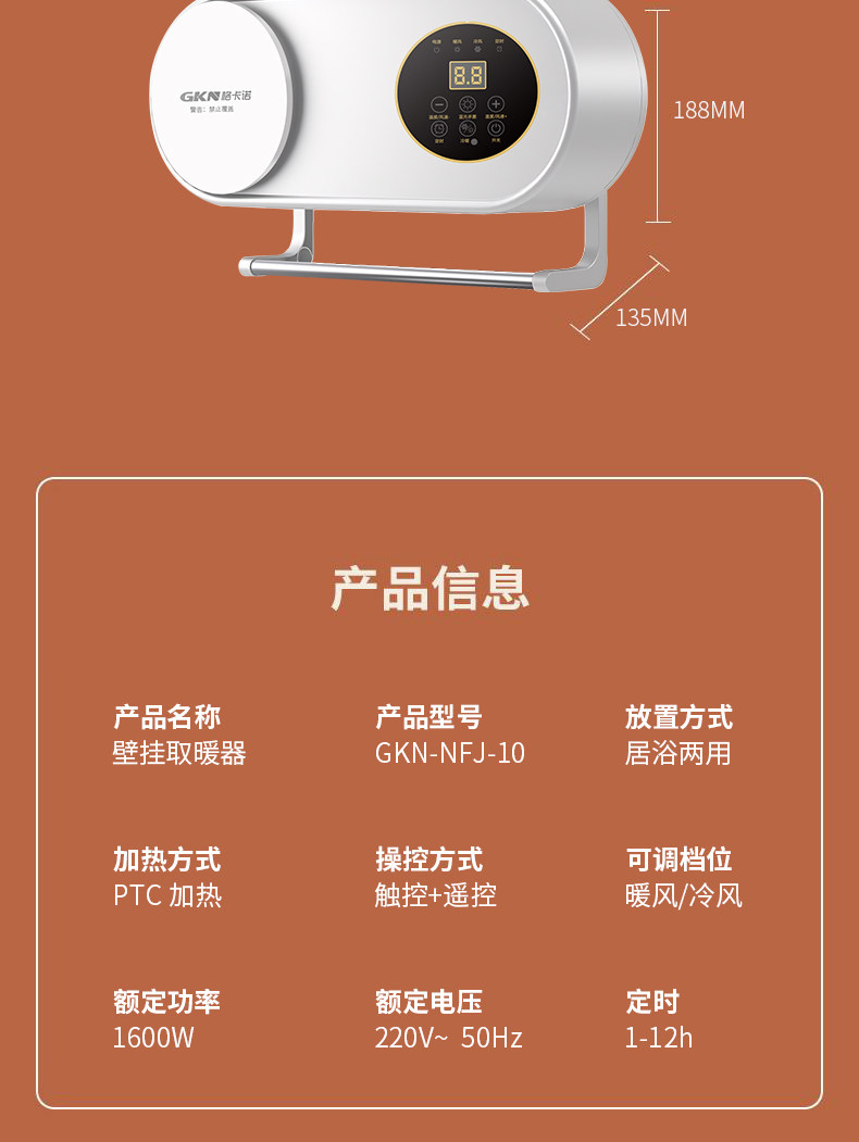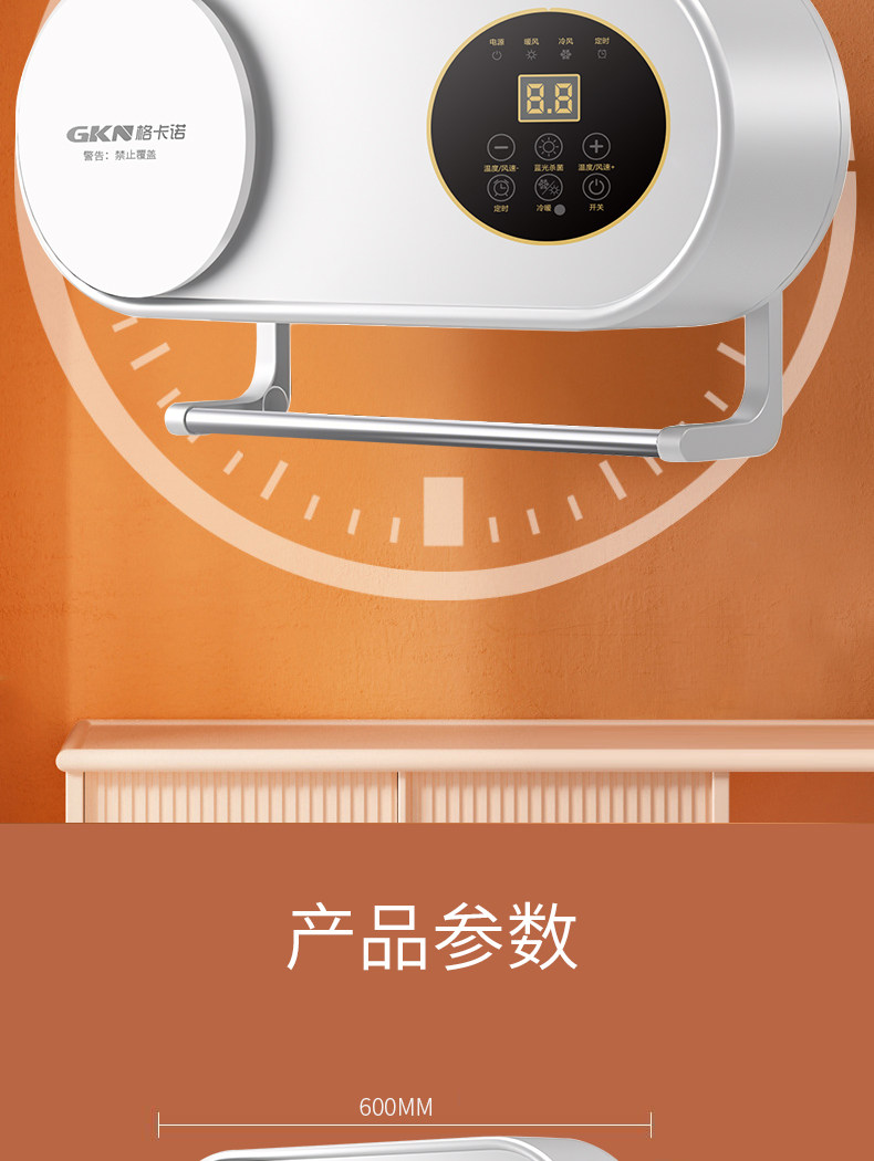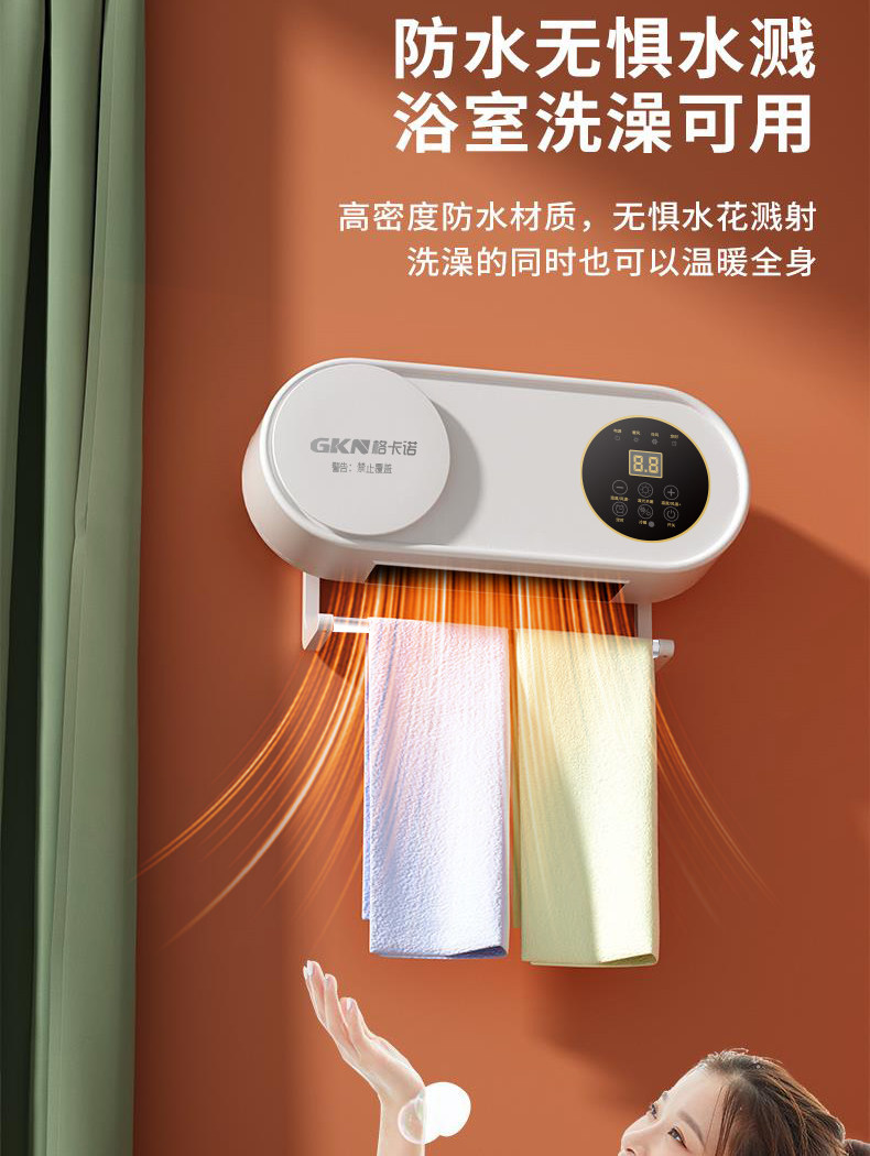 格卡诺新款壁挂取暖器家用卫生间浴室防水暖风机小型节能(带凉衣挂钩)GKN-NFJ-10