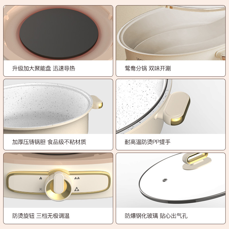 邻鹿分体式防干烧电火锅鸳鸯锅LR-500A