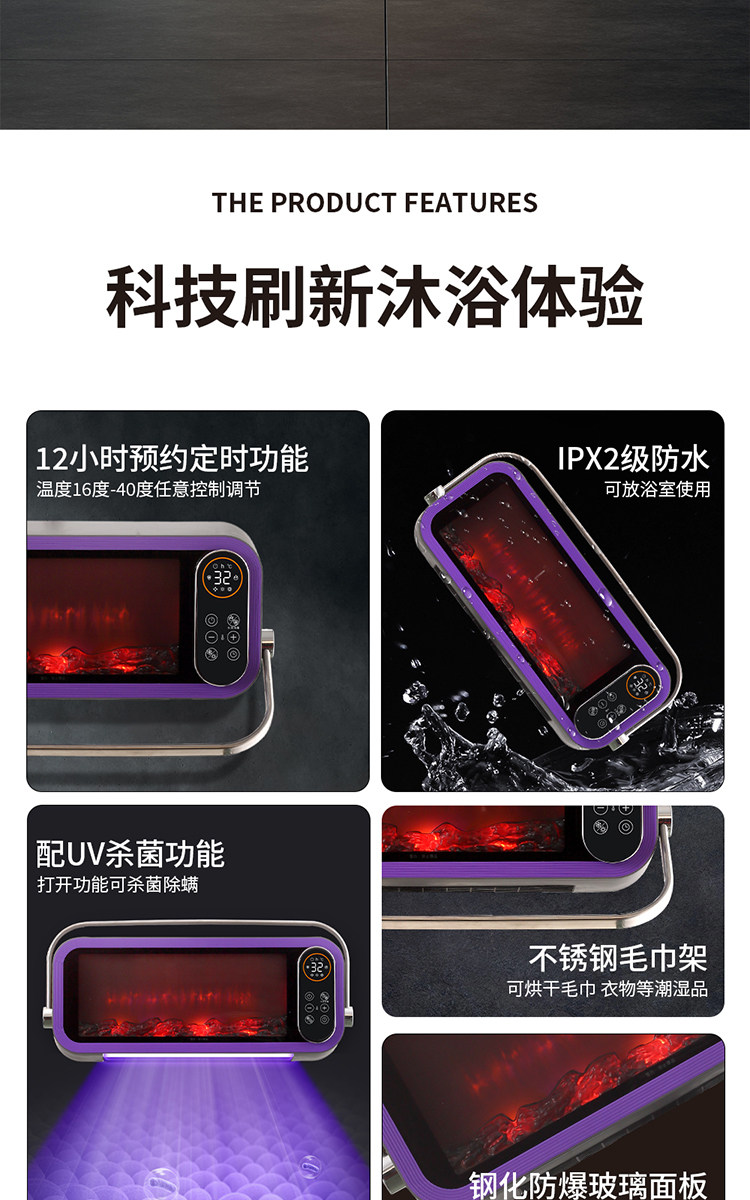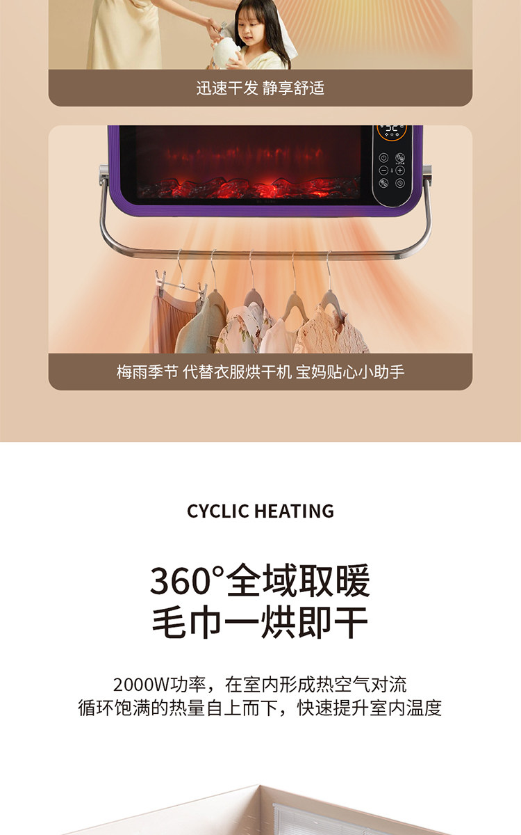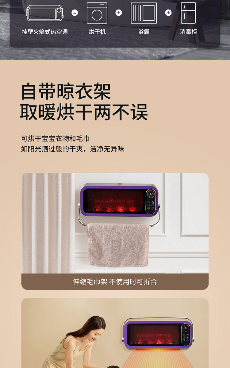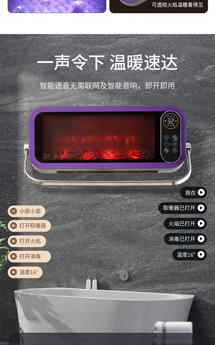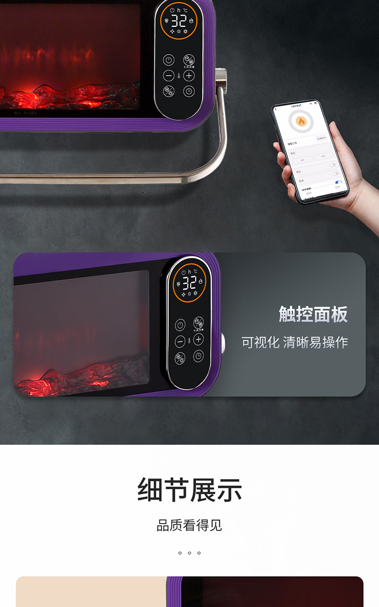 熊猫壁挂暖风机家用取暖器节能速热浴室防水电暖气语音电暖气LED显示屏NF2309BR