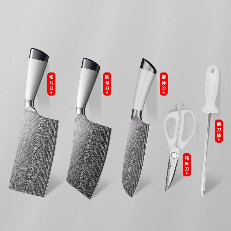 盘师傅星光刀具六件套【切片刀·砍骨刀·厨师刀·鸡骨刀·磨刀棒·底座】PSF-580