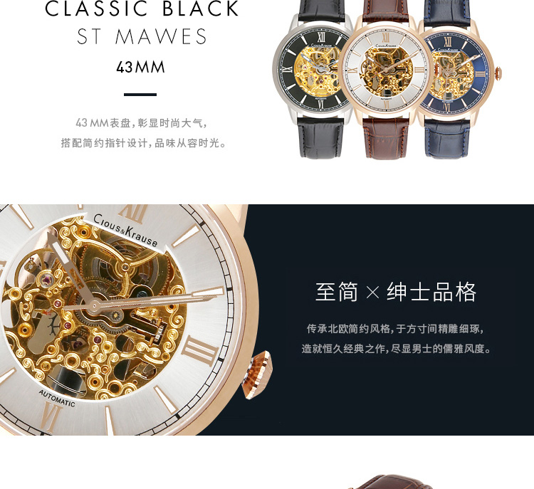 ClousKrause卡罗纹凯洛恩全自动男士镂空机械表 三色可选 CKO20S017A全国包邮