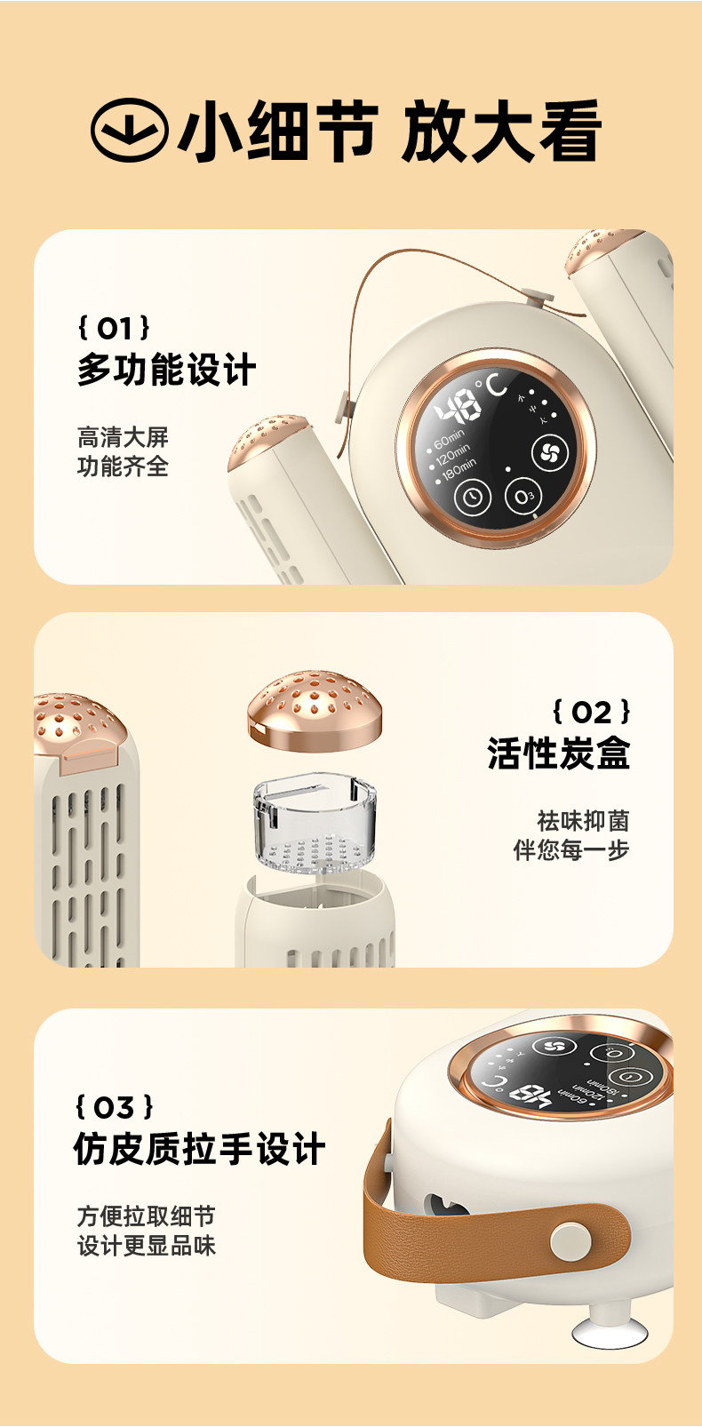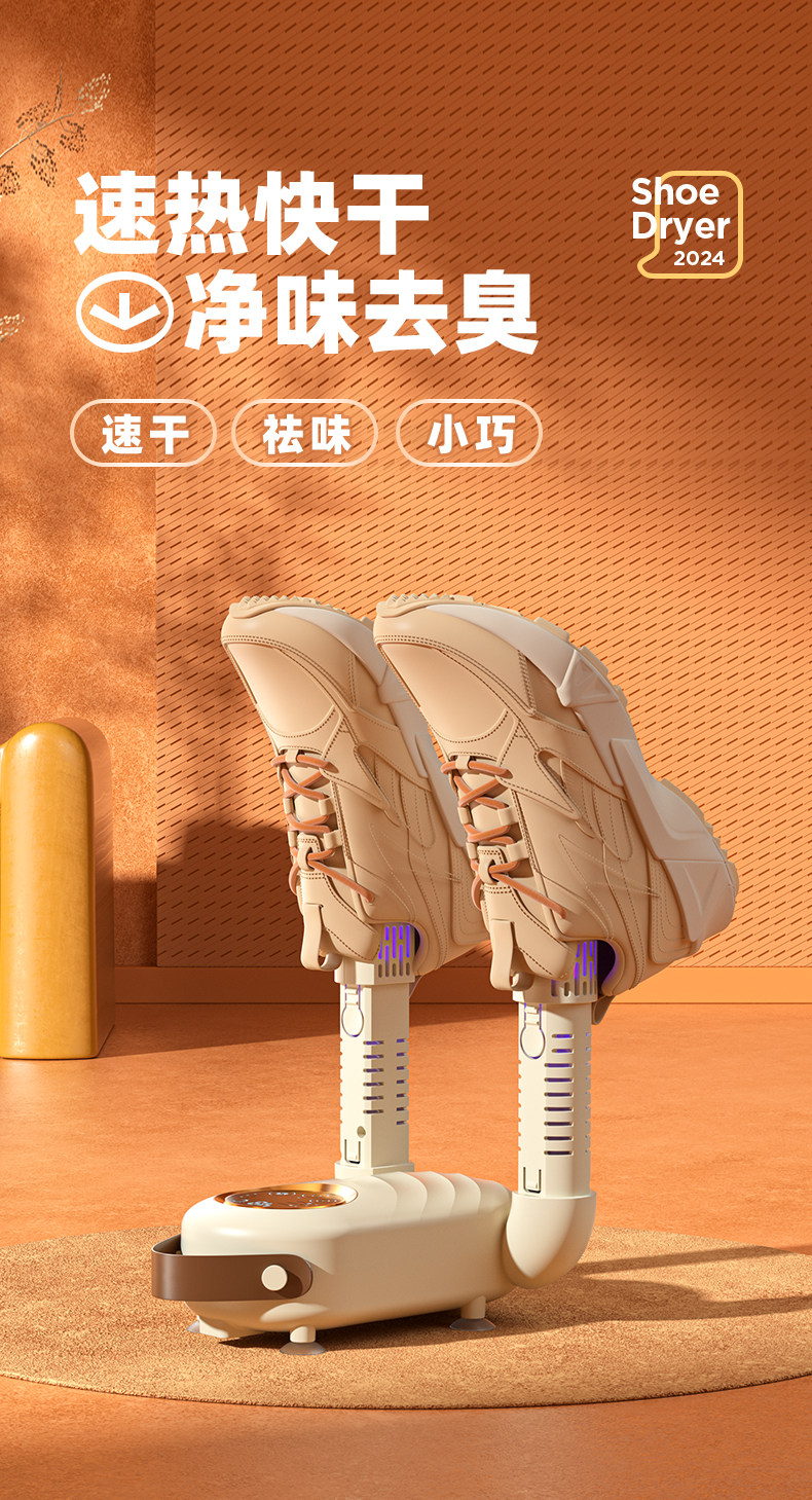中性便携式烘鞋器家用全自动干鞋器双折支架除臭抑菌速干烘鞋器TX-HX01(卡其色)