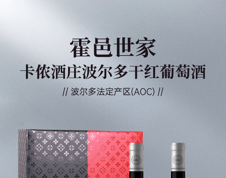 霍邑世家 卡侬干红葡萄酒 法国原瓶原装进口 波尔多法定产区 14.5度红葡萄酒 红酒 750ml/瓶 双支礼盒装